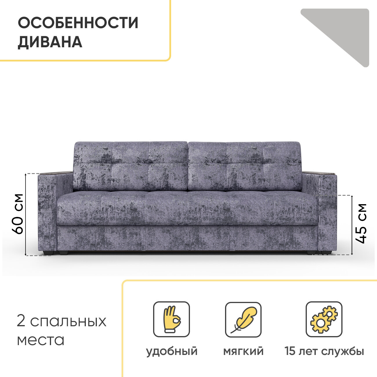 Диван кровать раскладной с подлокотниками, 2 подушками и ящиком, 218х97х87 см, Серый Forest 993