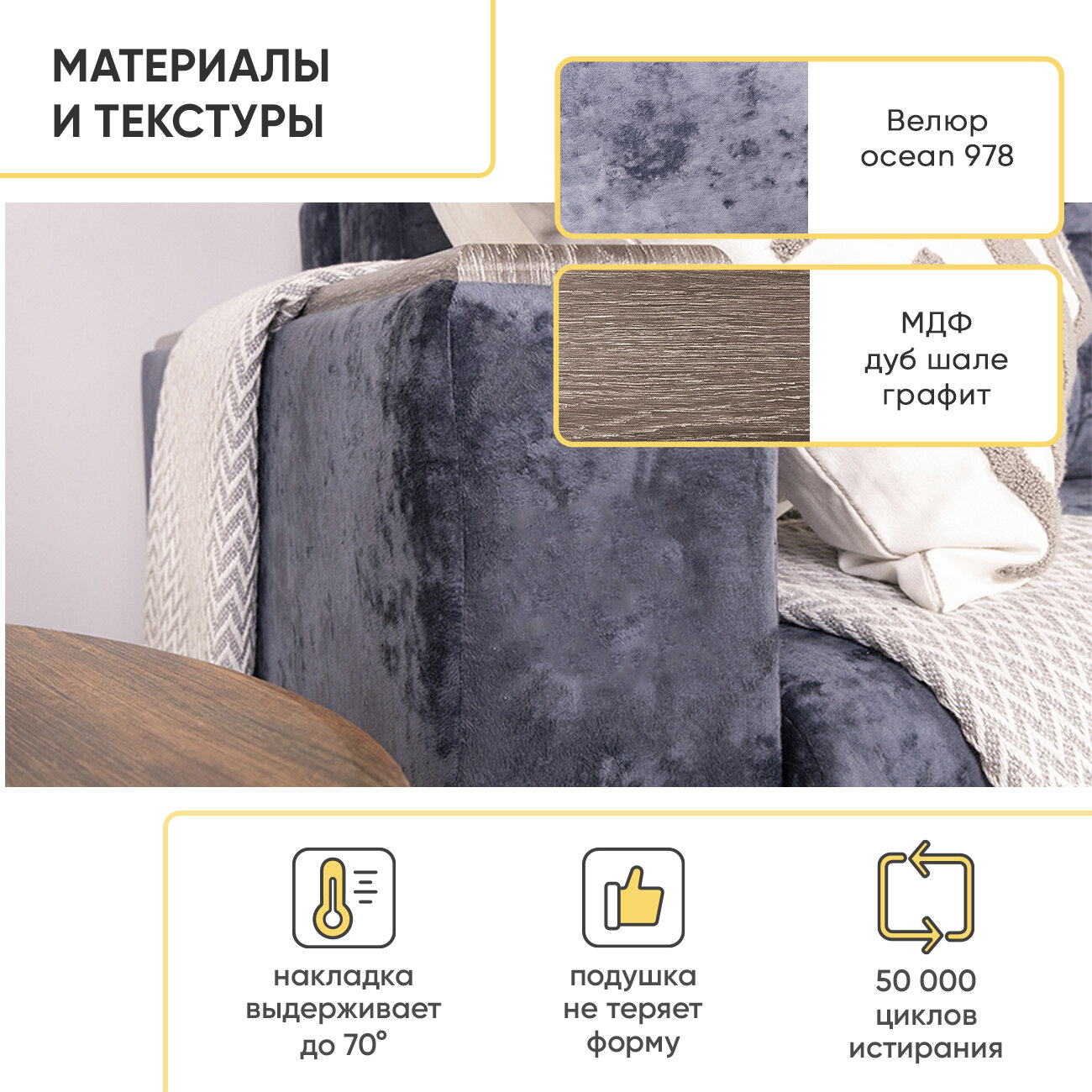 Диван кровать раскладной с подлокотниками, 2 подушками и ящиком, 218х97х87 см, Темно-синий ocean 978 интересное: