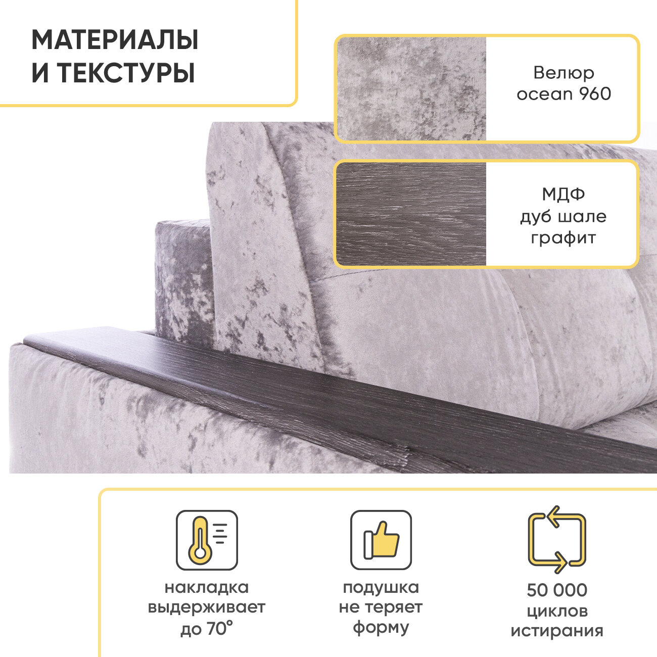 Диван кровать раскладной с подлокотниками, 2 подушками и ящиком, 218х97х87 см, Светло-серый ocean 960 интересное: