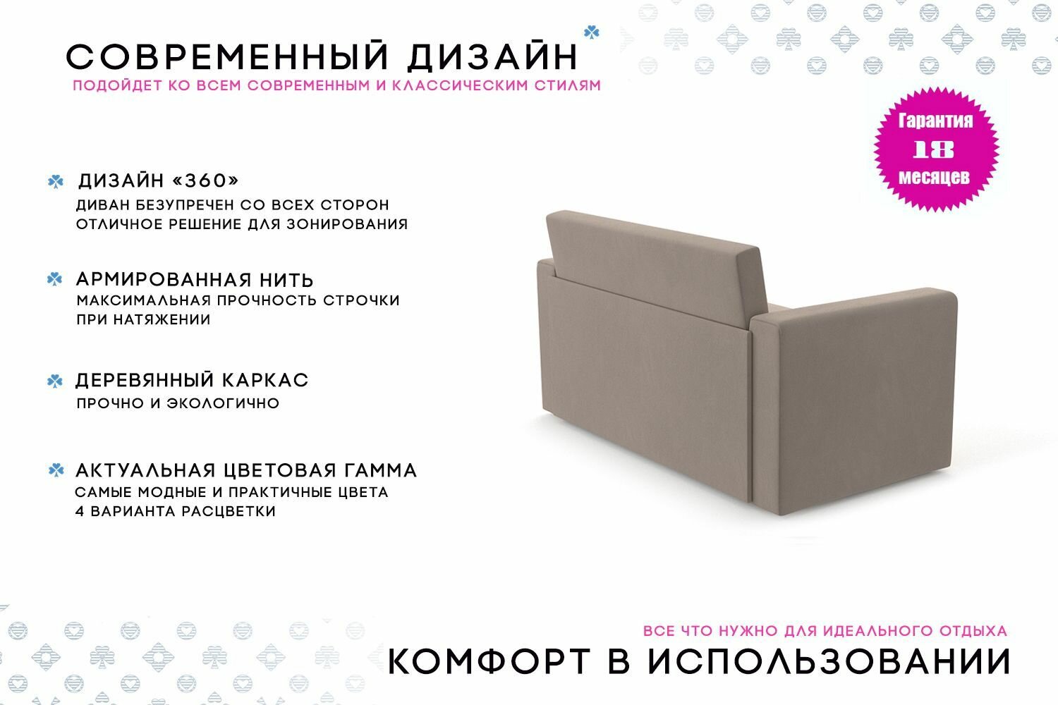 Диван-кровать раскладной PUSHE Нолан, велюр, бежевый Balance 130 интересное:
