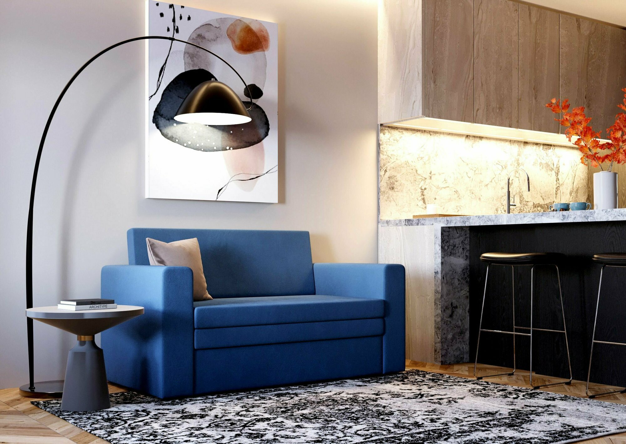 Диван-кровать раскладной PUSHE Нолан, велюр, синий Balance 784 интересное: