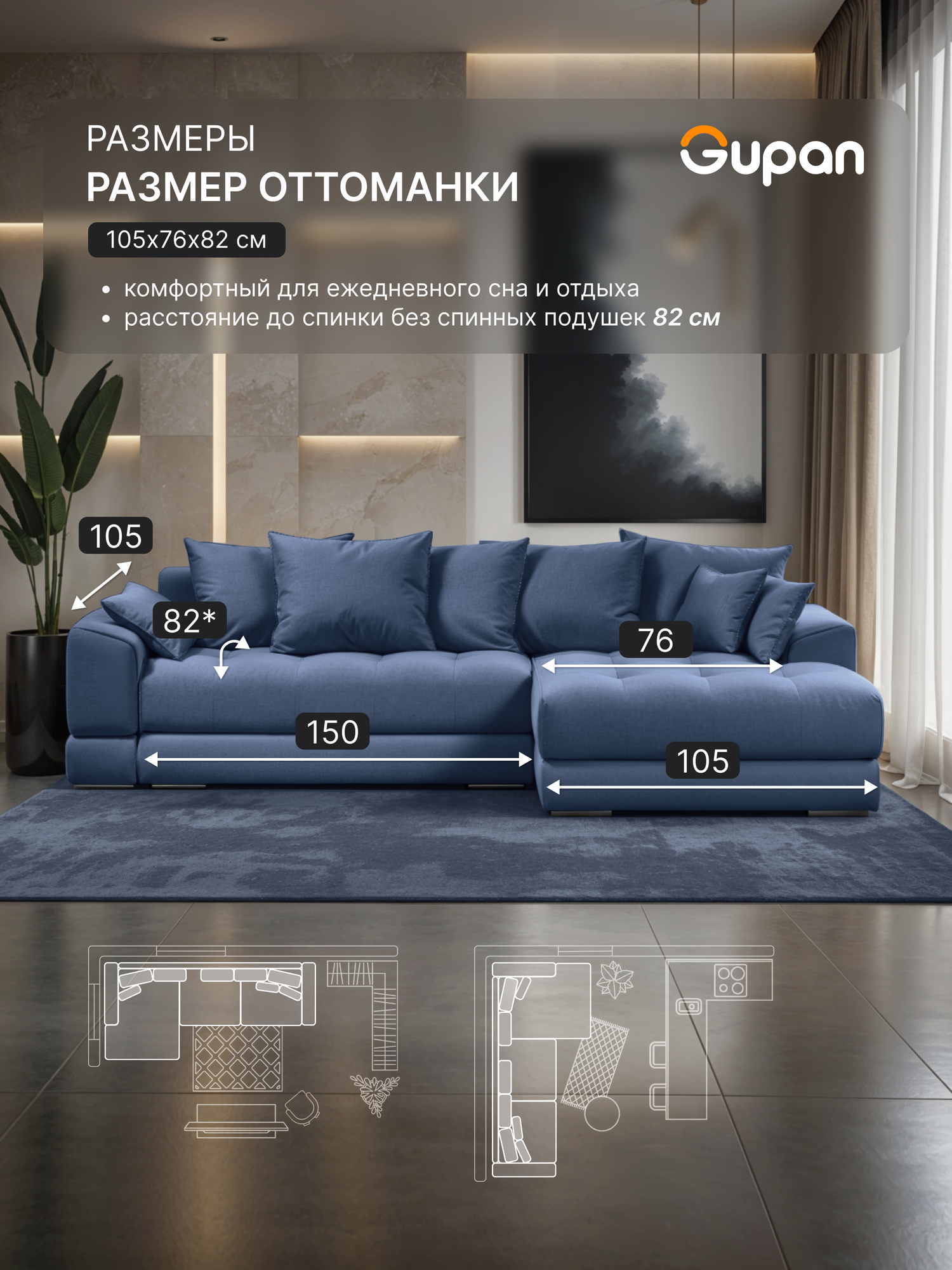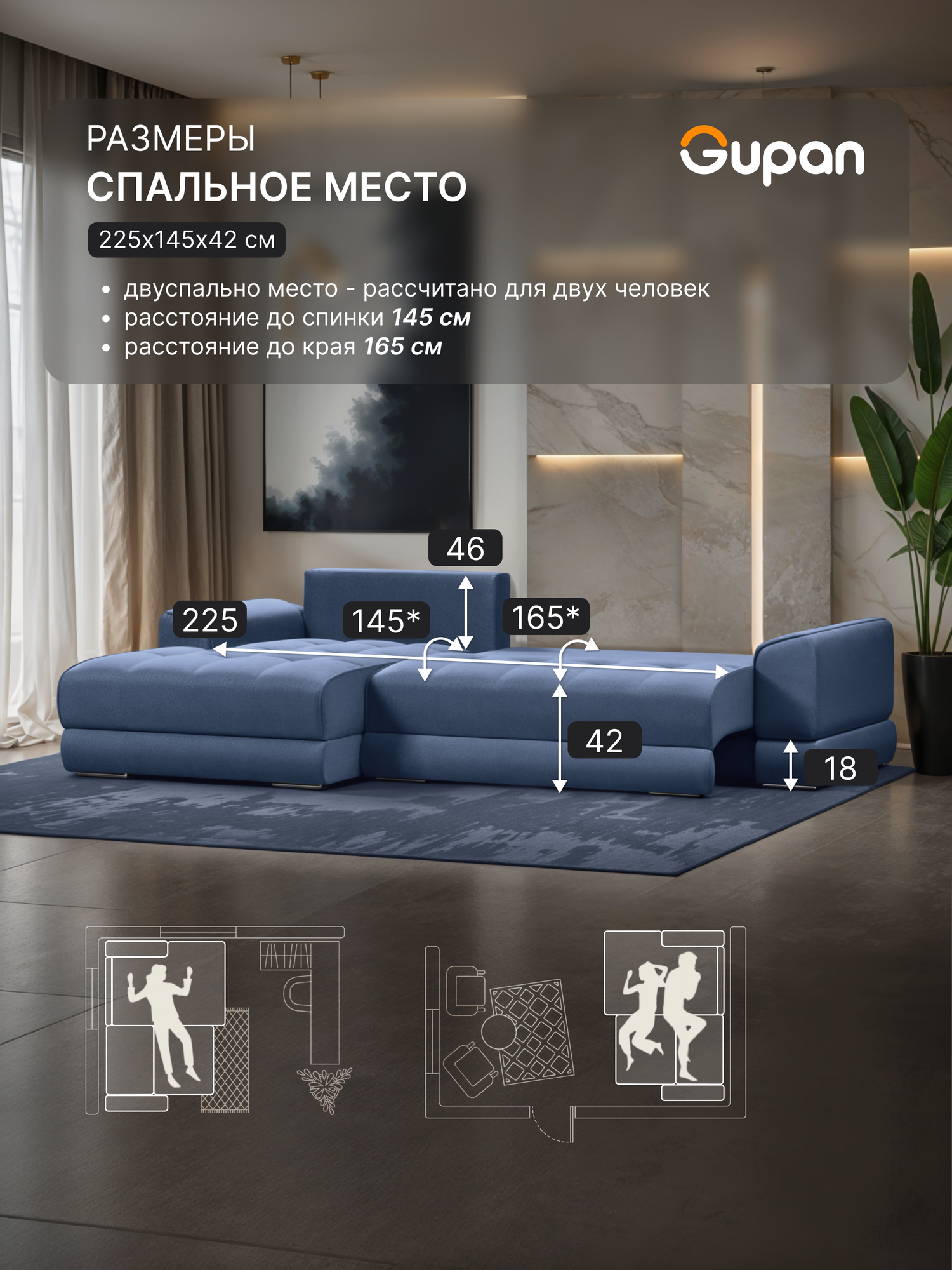 СохранитьУгловой диван-кровать Gupan Nordkisa, пружины, механизм Еврокнижка, 285х190х87 см, наполнитель ППУ, ящик для белья, цвет Amigo Navy интересное:
