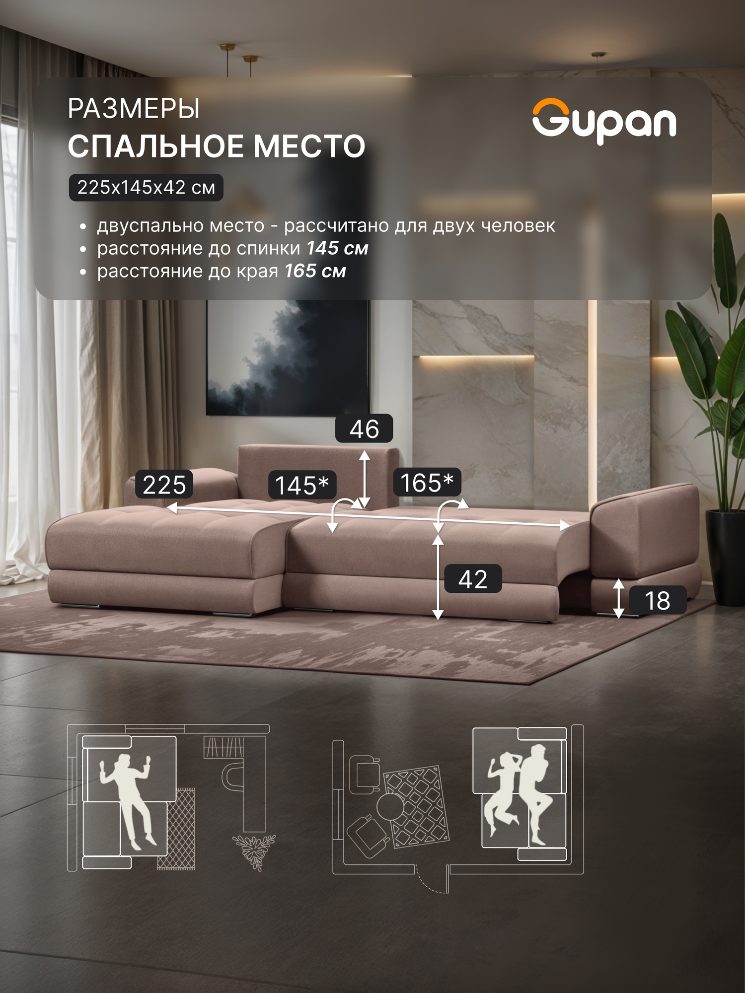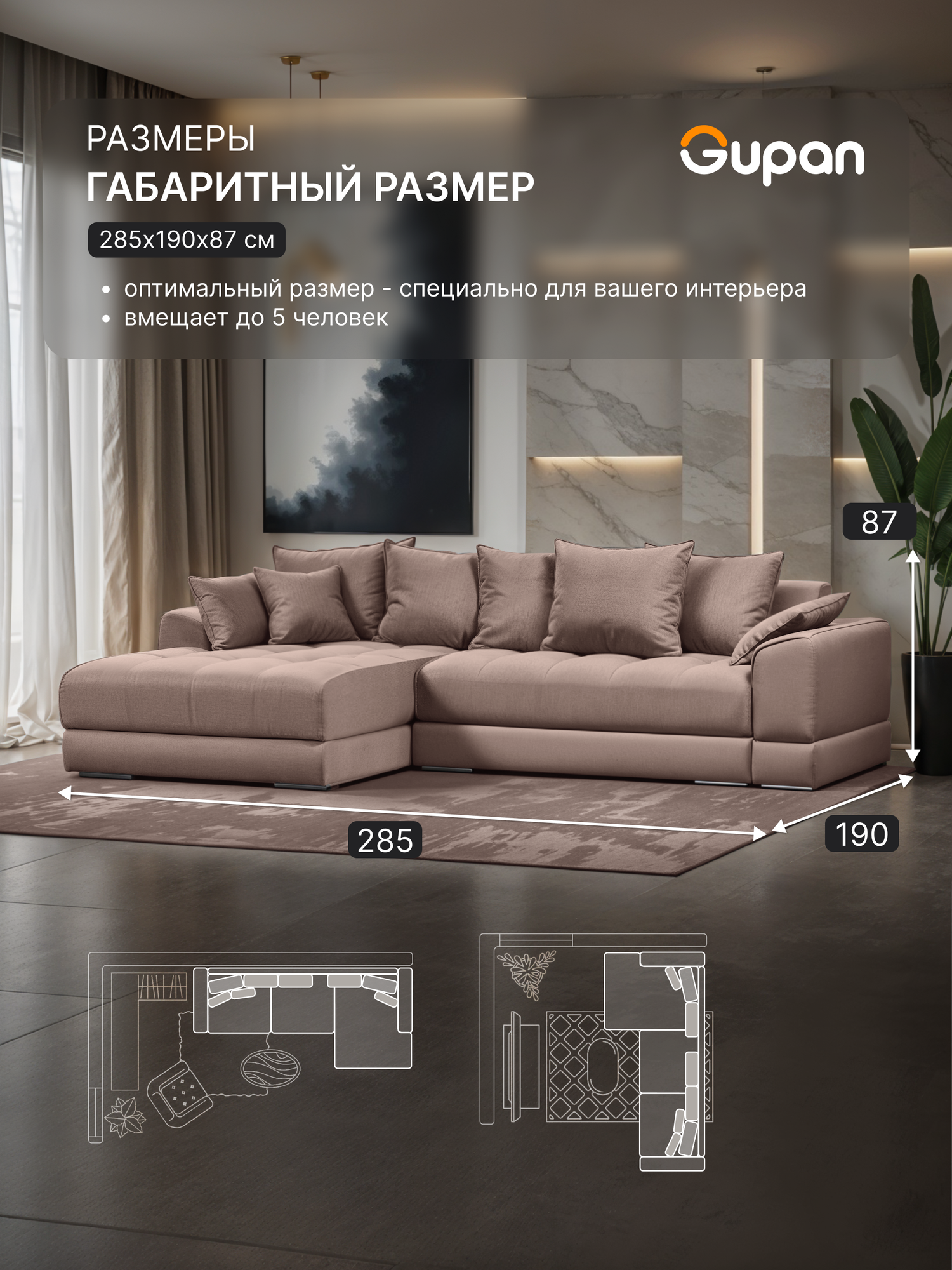 СохранитьУгловой диван-кровать Gupan Nordkisa, пружины, механизм Еврокнижка, 285х190х87 см, наполнитель ППУ, ящик для белья, цвет Amigo Latte интересное: