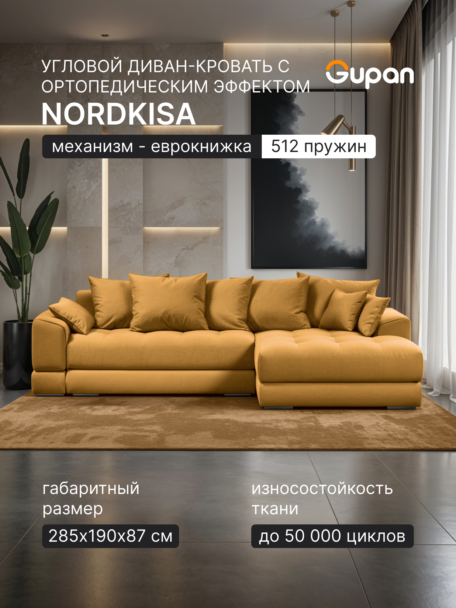 Купить Угловой диван-кровать Gupan Nordkisa, пружины, механизм Еврокнижка, 285х190х87 см, наполнитель ППУ, ящик для белья, цвет Amigo Yellow