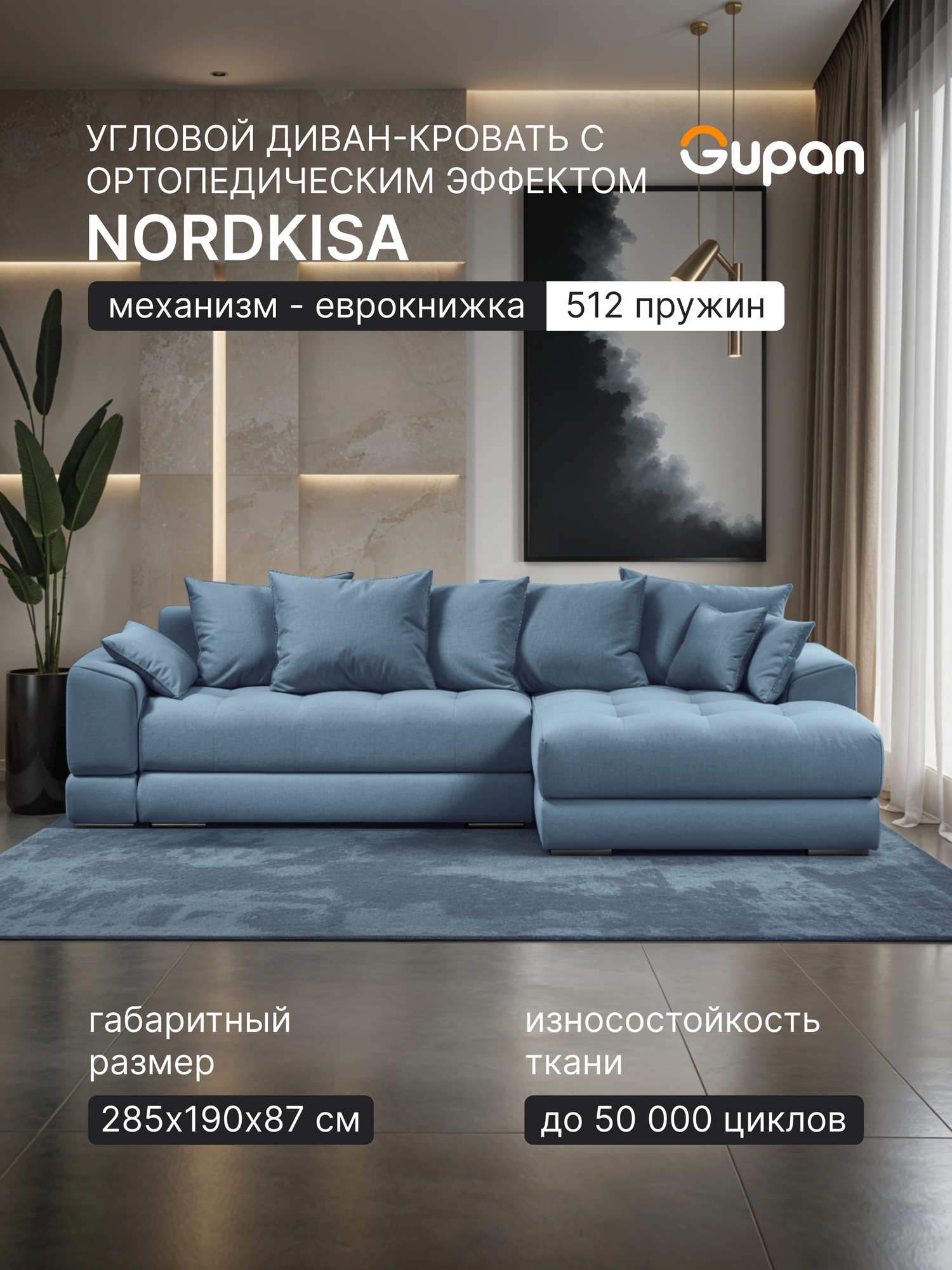 Купить Угловой диван-кровать Gupan Nordkisa, пружины, механизм Еврокнижка, 285х190х87 см, наполнитель ППУ, ящик для белья, цвет Amigo Blue