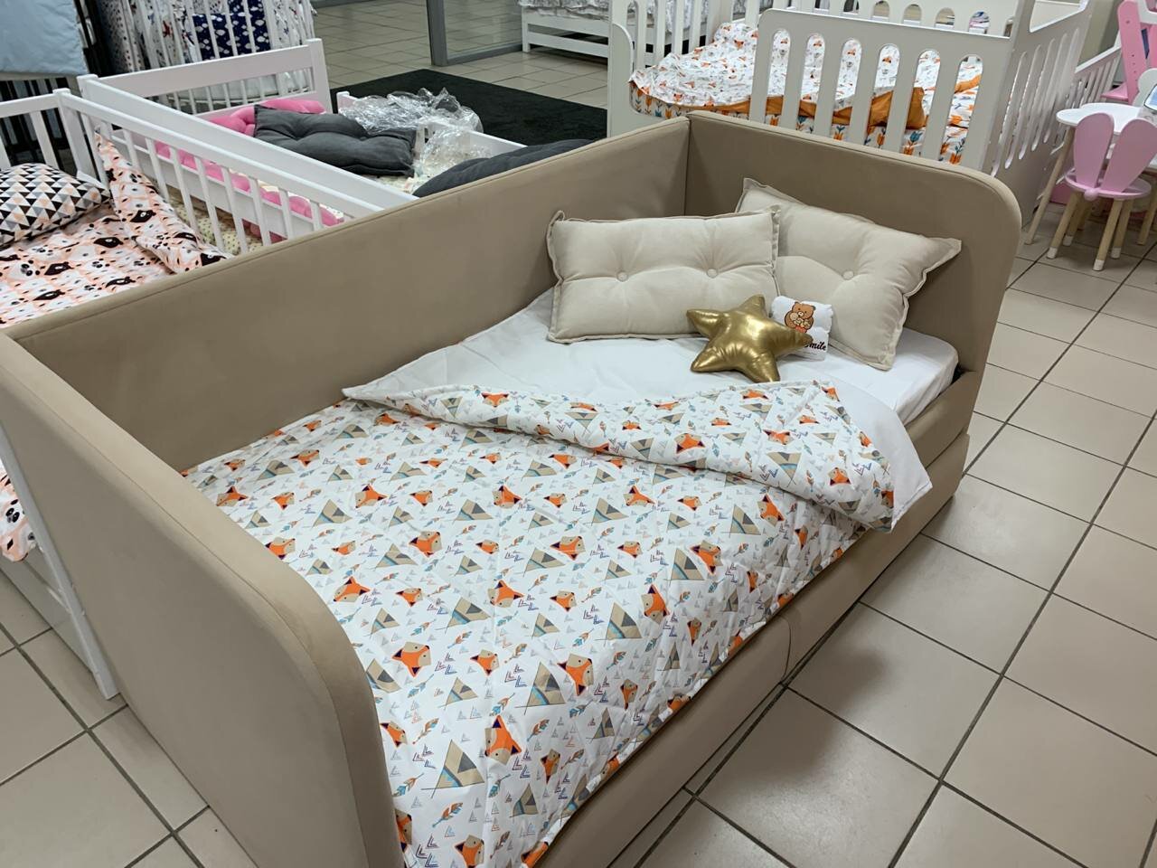 Детский диван кровать 200х90 см Lucky Бежевый, кровать диван от 3 лет с бортиками и выкатным ящиком, тахта кровать односпальная подростковая