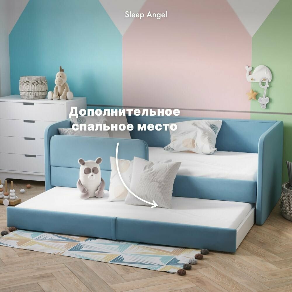 Детский диван кровать 160х80 см Lucky Голубой кровать диван от 3 лет, с бортиками и выкатным ящиком, тахта кровать софа односпальная подростковая