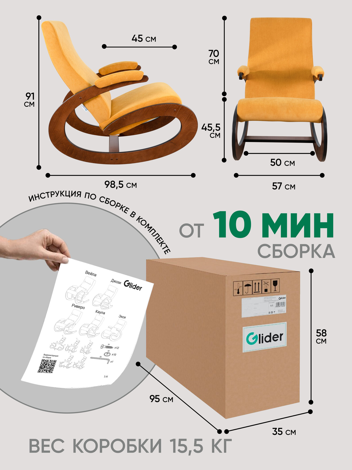 | Комплектация | Кресло-качалка - 1шт, инструкция по сборке, комплект фурнитуры |