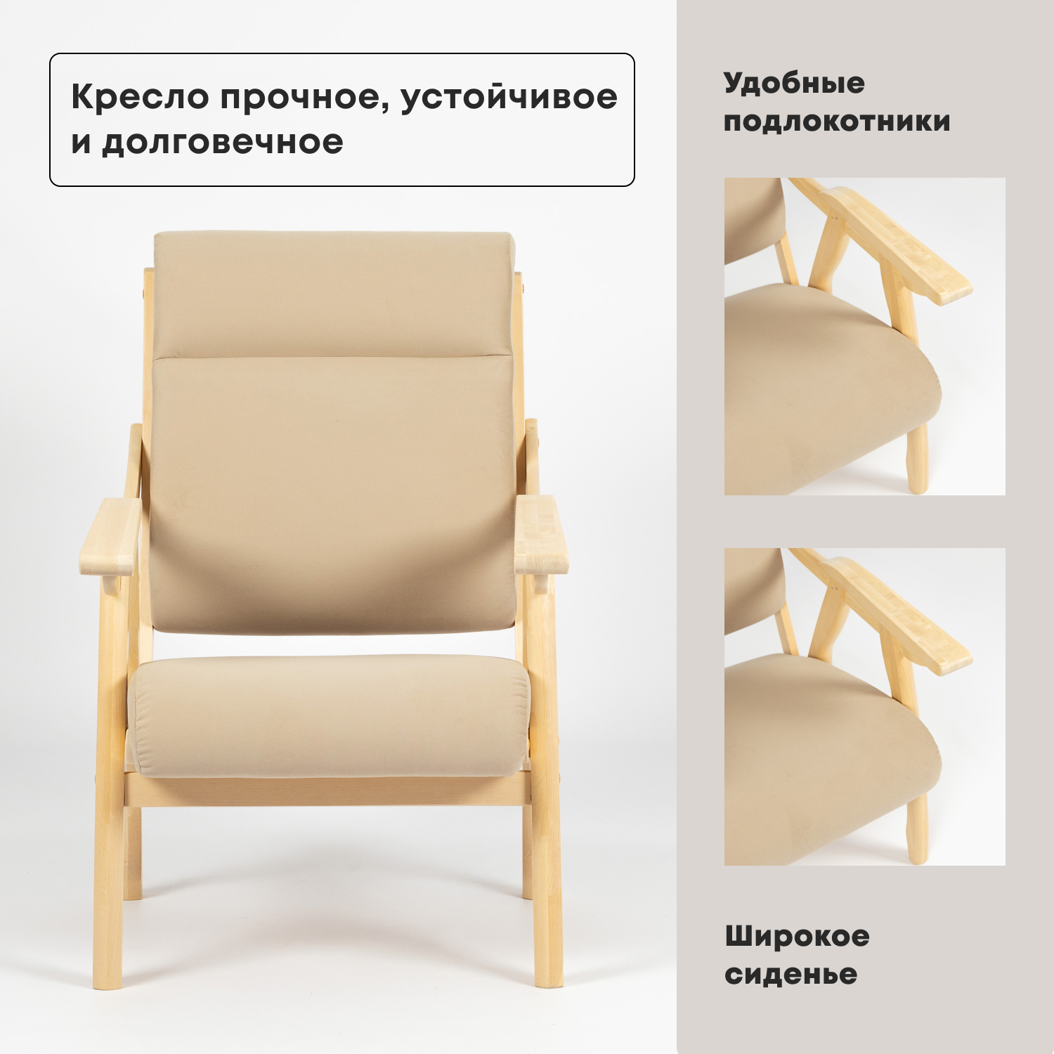 Кресло Диван 24 "Вега-10" бежевый, велюр, бесцветный лак интересное:
