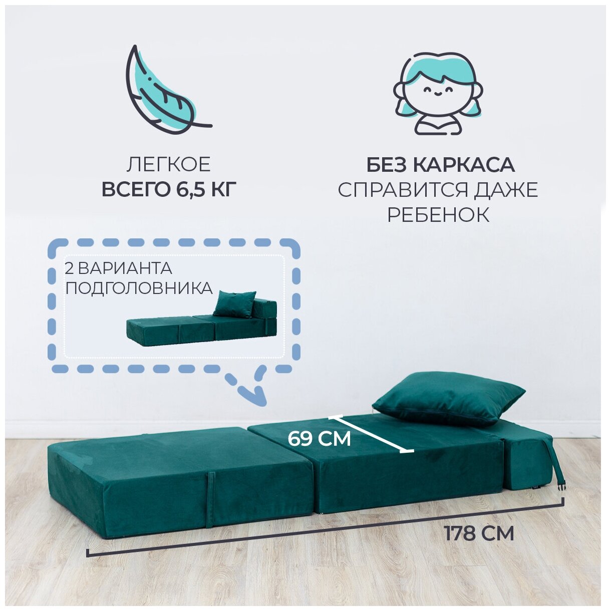 Купить Бескаркасное кресло кровать Эссен, 60х69х78 см, раскладной мини диван трансформер зеленый