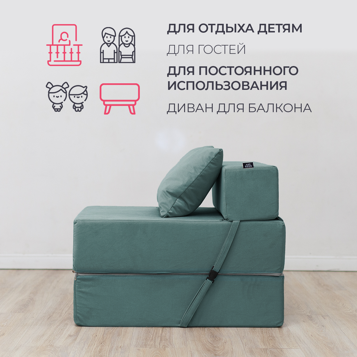 Купить Бескаркасное кресло кровать Эссен, 60х69х78 см, раскладной мини диван трансформер бирюзовый