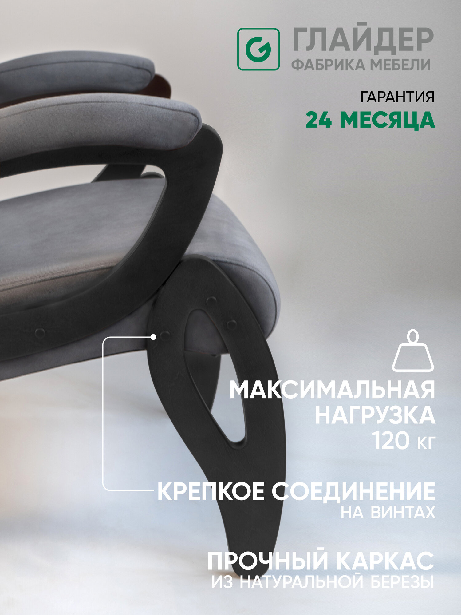 Кресло мягкое для дома и дачи Glider Весна с мягкими подлокотниками, цвет серый/черный