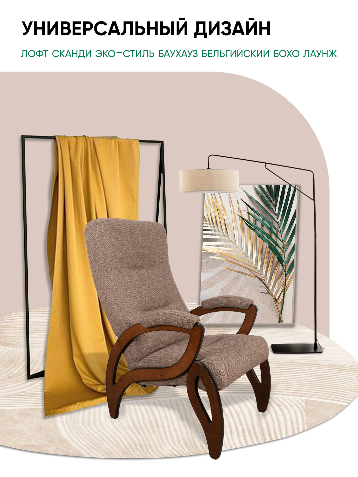 Кресло мягкое для дома и дачи Glider Бревис с подлокотниками, цвет бежевый/коричневый