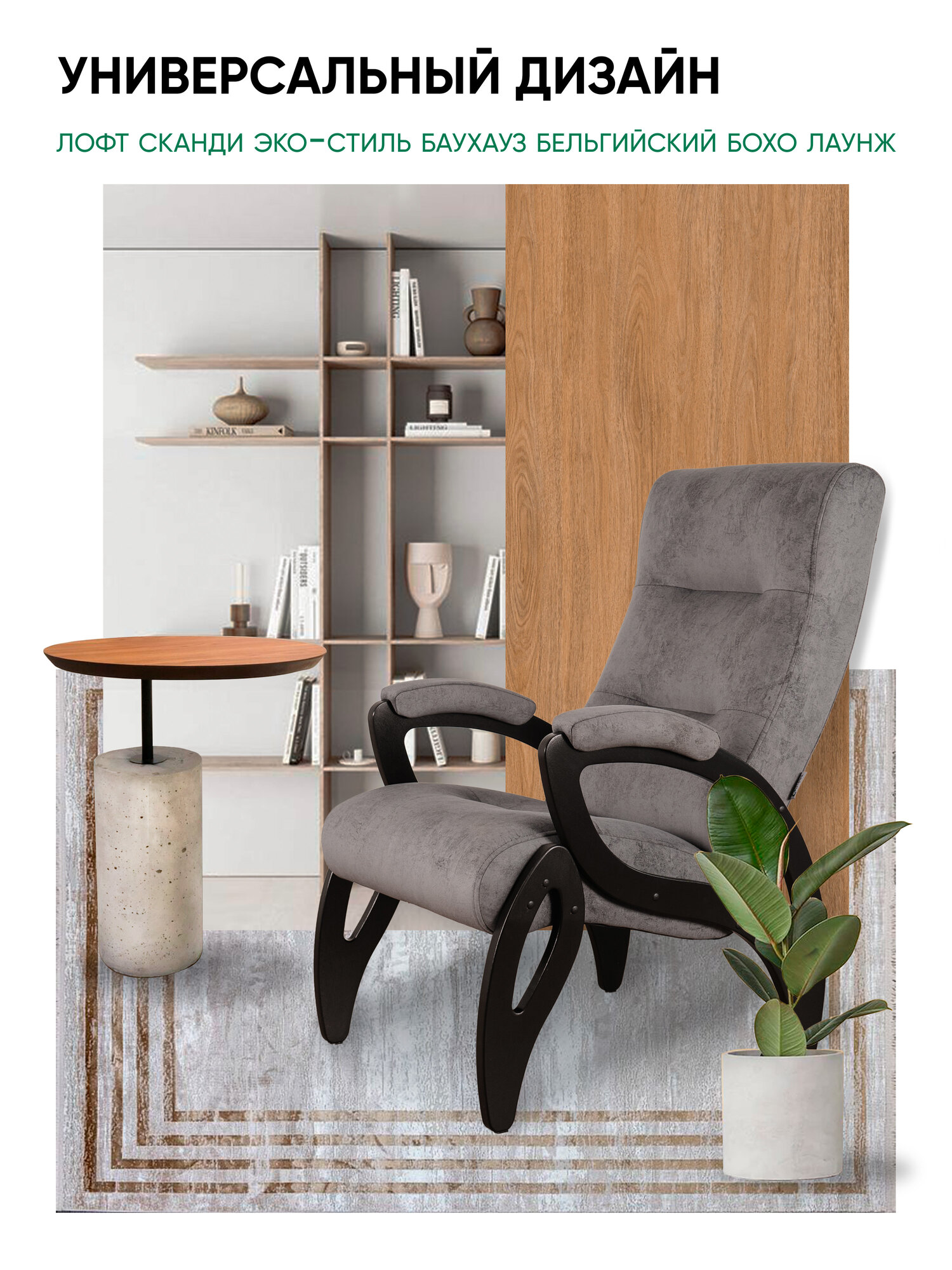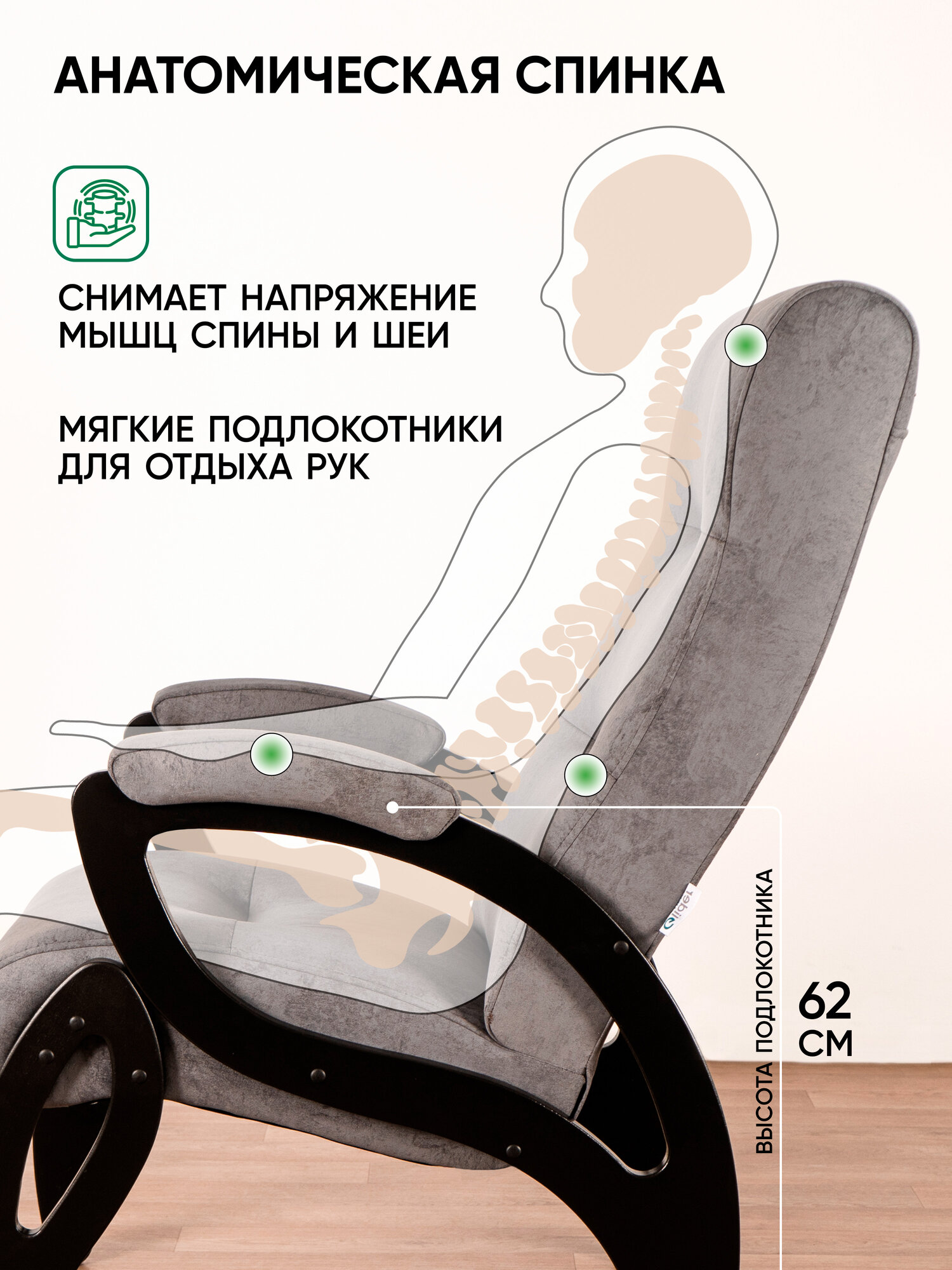 Кресло мягкое для дома и дачи Glider Весна М с мягкими подлокотниками, цвет серый