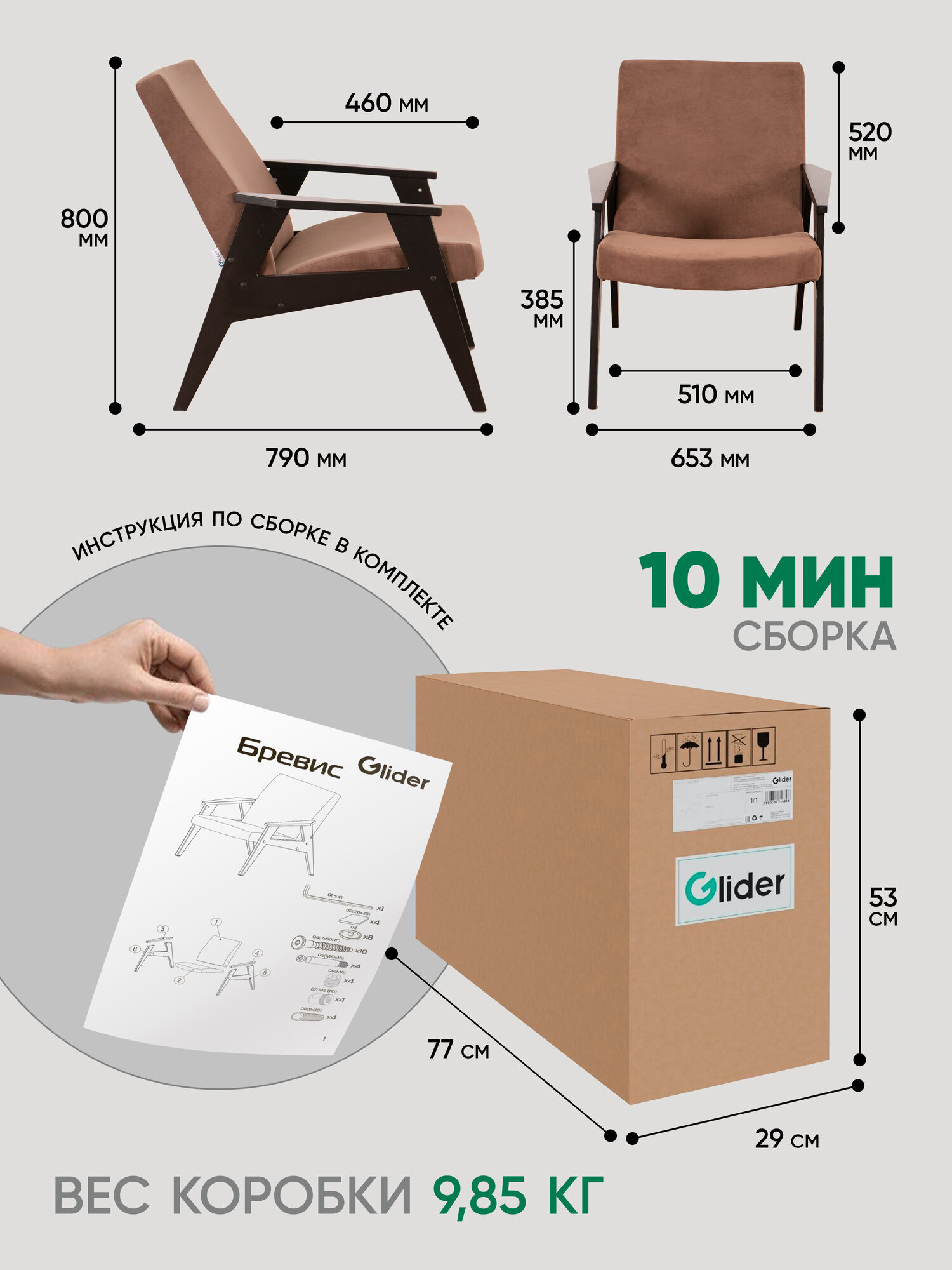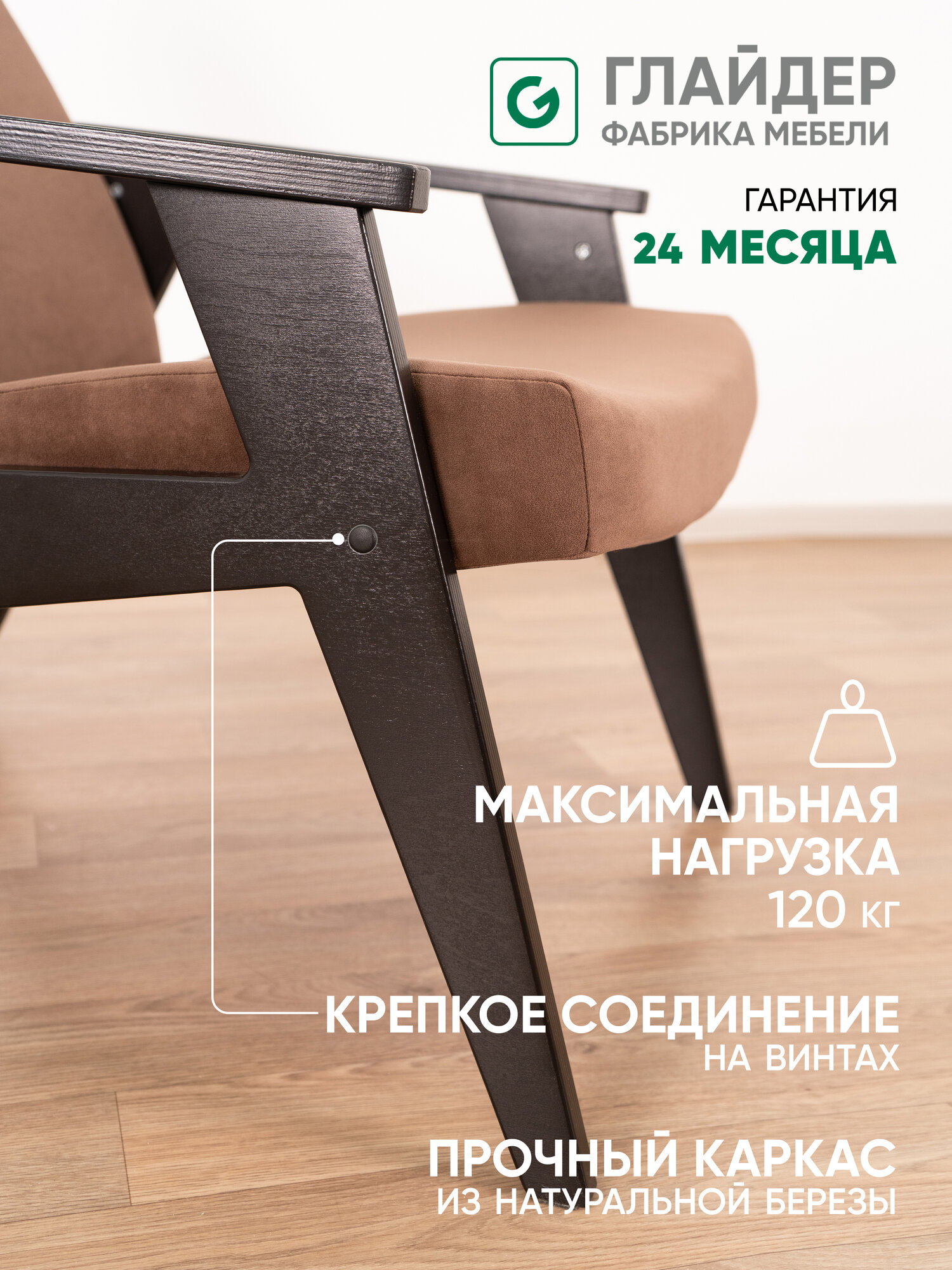 Кресло мягкое для дома и дачи Glider Весна с мягкими подлокотниками, цвет коричневый