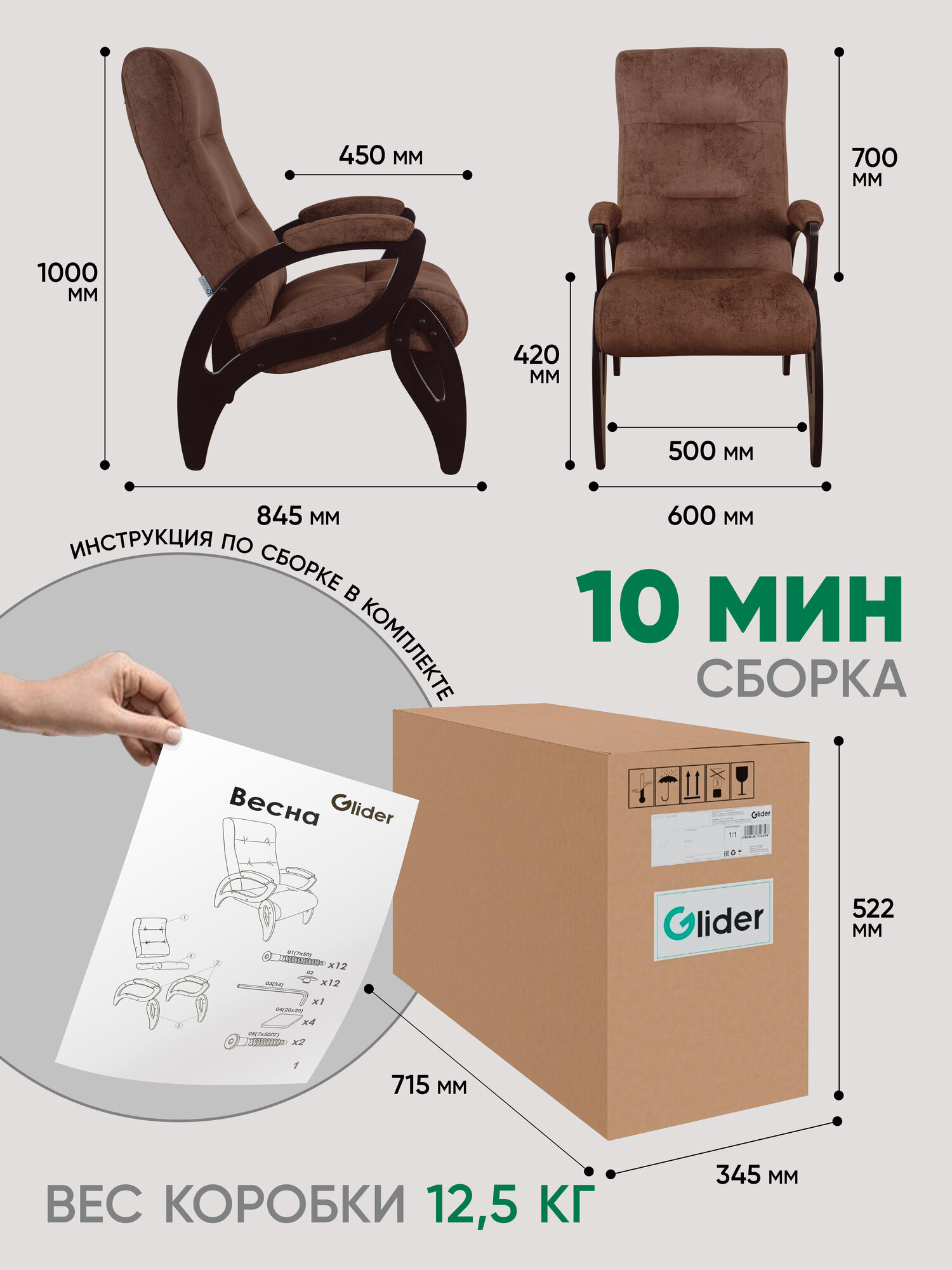 Купить Кресло мягкое для дома и дачи Glider Весна с мягкими подлокотниками, цвет шоколадный/коричневый