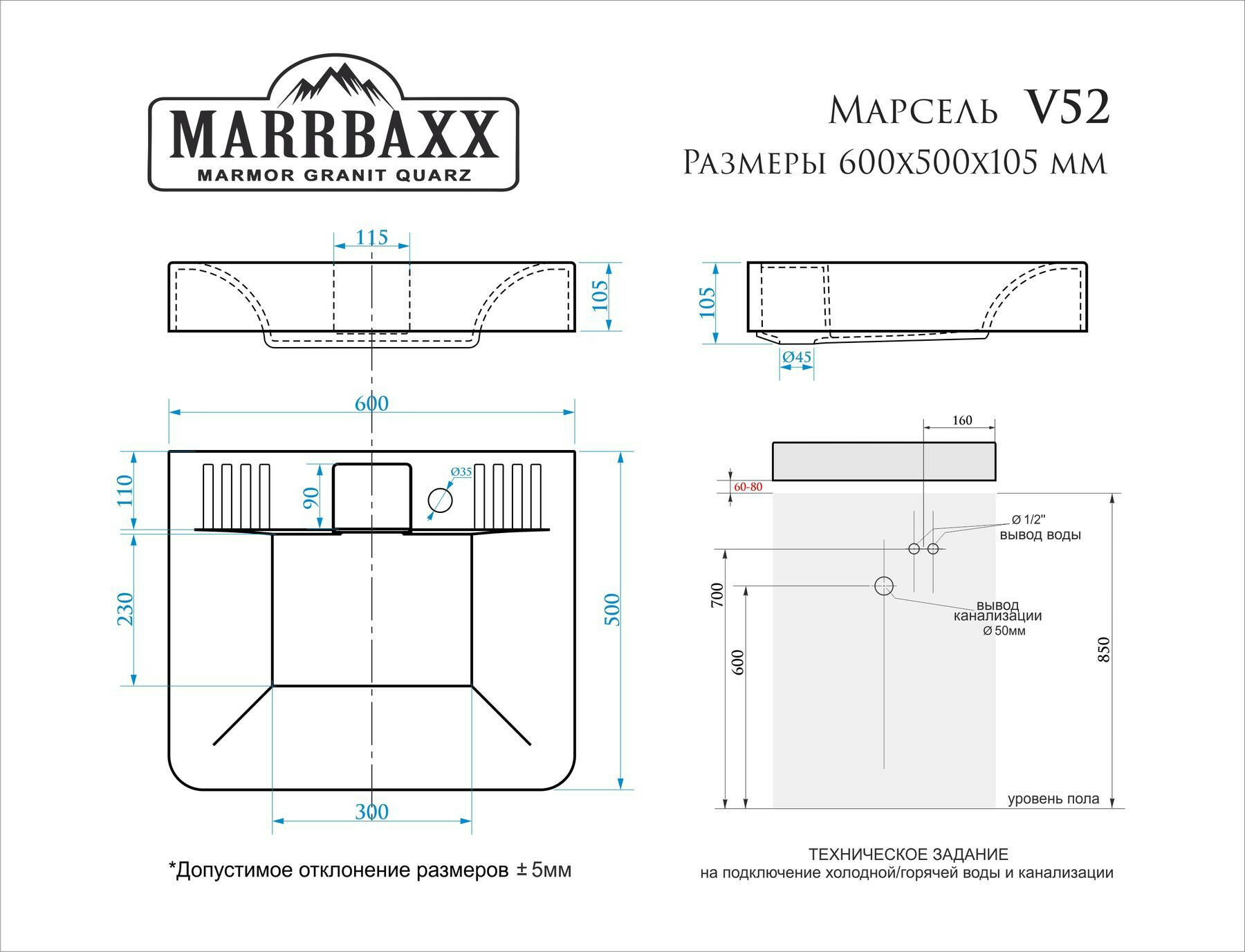 Раковина над стиральной машиной Marrbaxx Марсель V52 интересное: