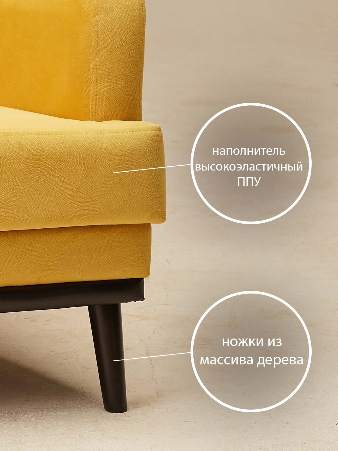 Купить Кресло Оскар мягкое для отдыха в гостиную, на ножках, велюр желтый