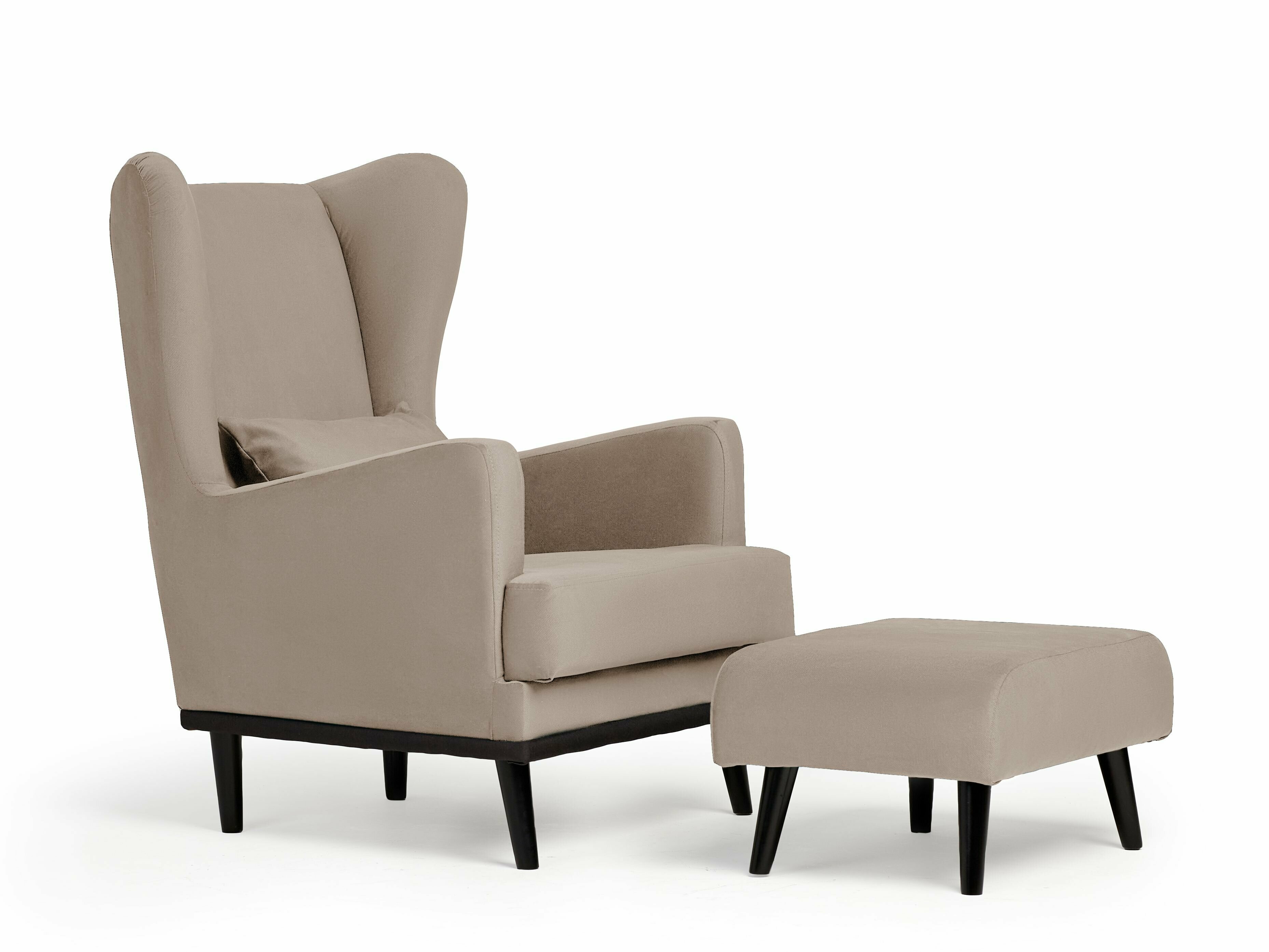Кресло Оскар мягкое для отдыха в гостиную, с подушкой, на ножках, велюр бежевый