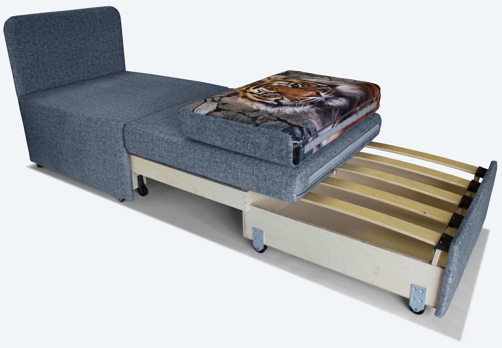 Купить Кресло-кровать Миник 3в1: кресло, кровать, кушетка. 65х89х74 см, с ящиком, выкатной механизм трансформации, велюр Rich Grey Тигр