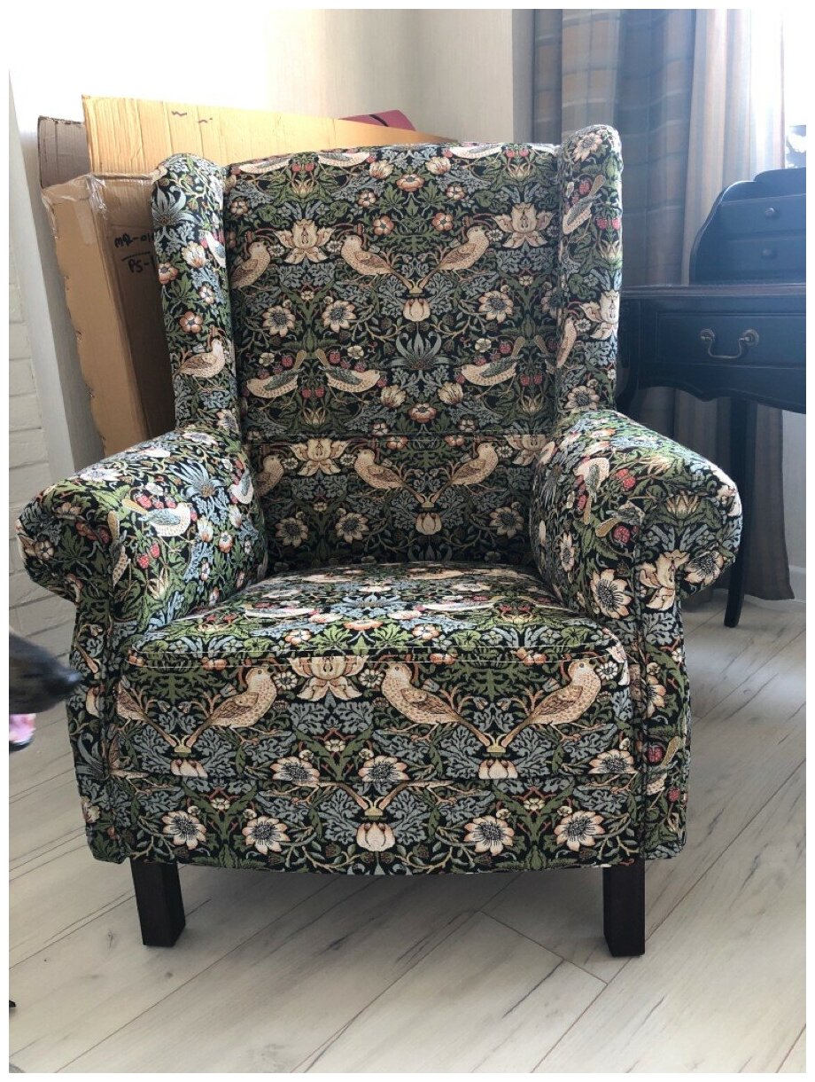 | Комплектация | кресло 1 шт. с обивкой из мебельной ткани/ с сиденьем с пружинным блоком/ ортопедическими высокой спинкой/ мягкими подлокотниками/ на прямых деревянных ножках |