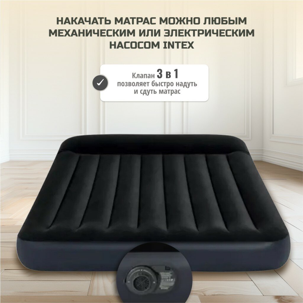 Матрас надувной Intex, 203х152х25 см, 64150ND, нас встроен, электр, флок, 273 кг интересное: