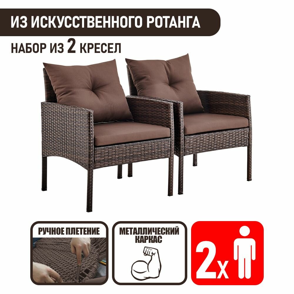 Садовые кресла плетеные из искусственного ротанга Фьорд, шоколад. Комплект из 2-х кресел интересное: