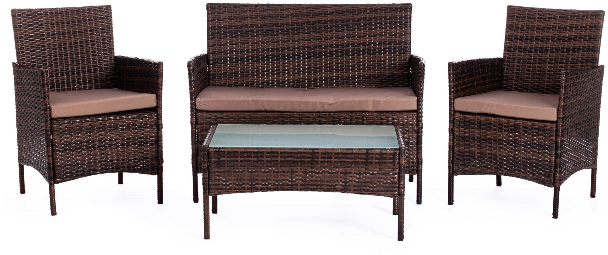 Купить Садовая мебель из искусственного ротанга TetChair Лаундж сет (диван+2 кресла+столик+подушки), коричневый