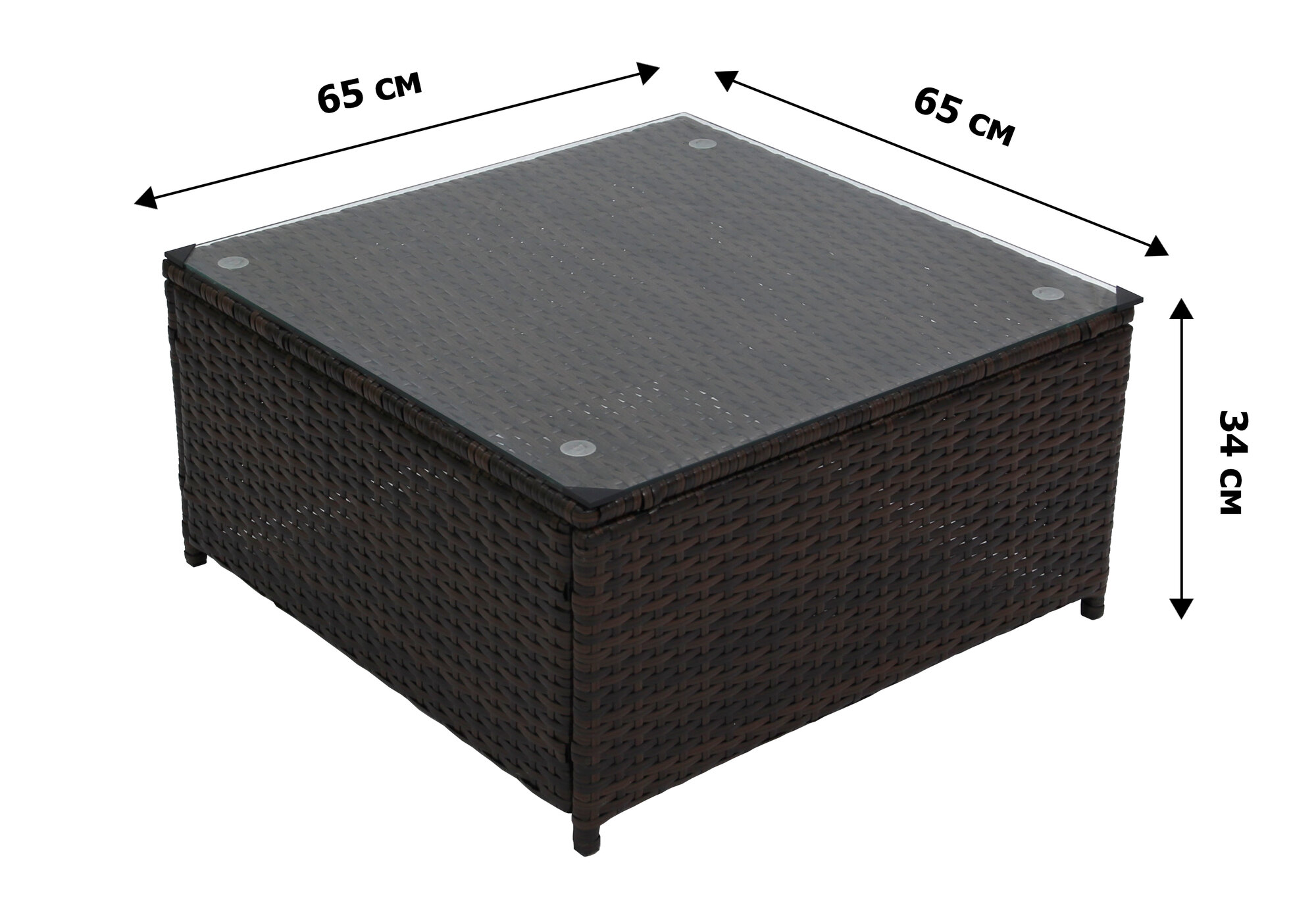 | Дополнительная информация | угловое кресло: 673x673x660мм кресло: 673x673x660мм кофейный стол: 673x673x310мм закаленное стекло: 668x668x5мм две дополнительные подушки |