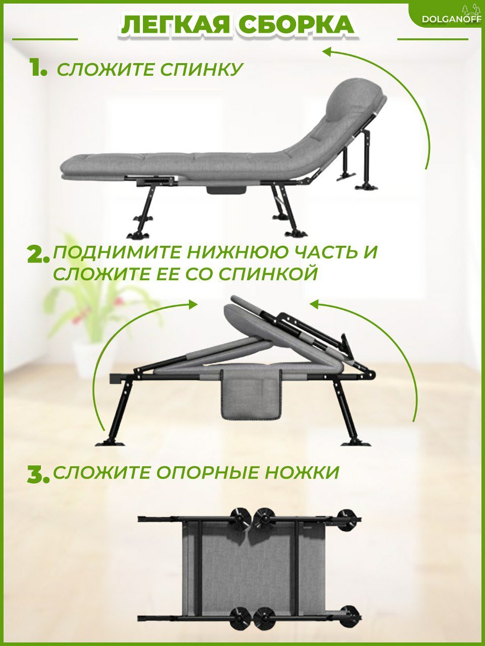 Карповая раскладушка со встроенным матрасом, DOLGANOFF, 198х65х35, до 160кг интересное: