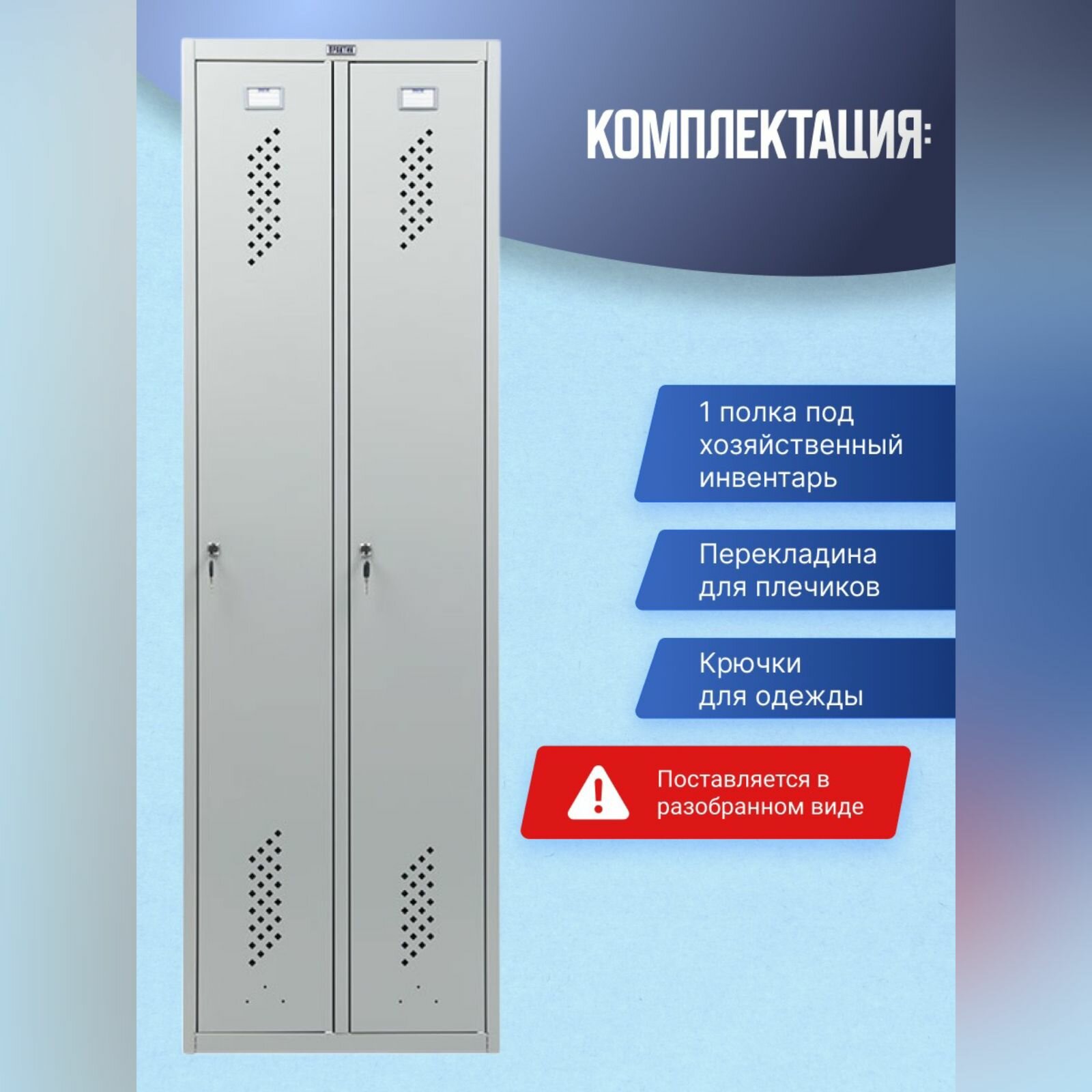 | Дополнительная информация | Шкаф для одежды ПРАКТИК LS-21-50 выполнен из прочной стали и покрыт порошковым покрытием. Шкаф поставляются в разобранном виде. |