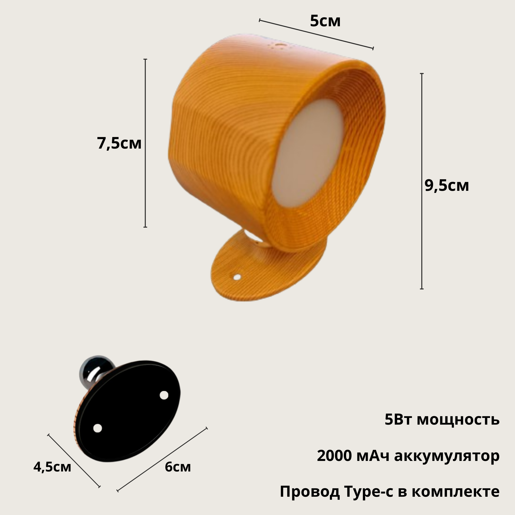 Светильник настенный беспроводной FEDOTOV светодиодный на аккумуляторе магнитный под дерево интересное: