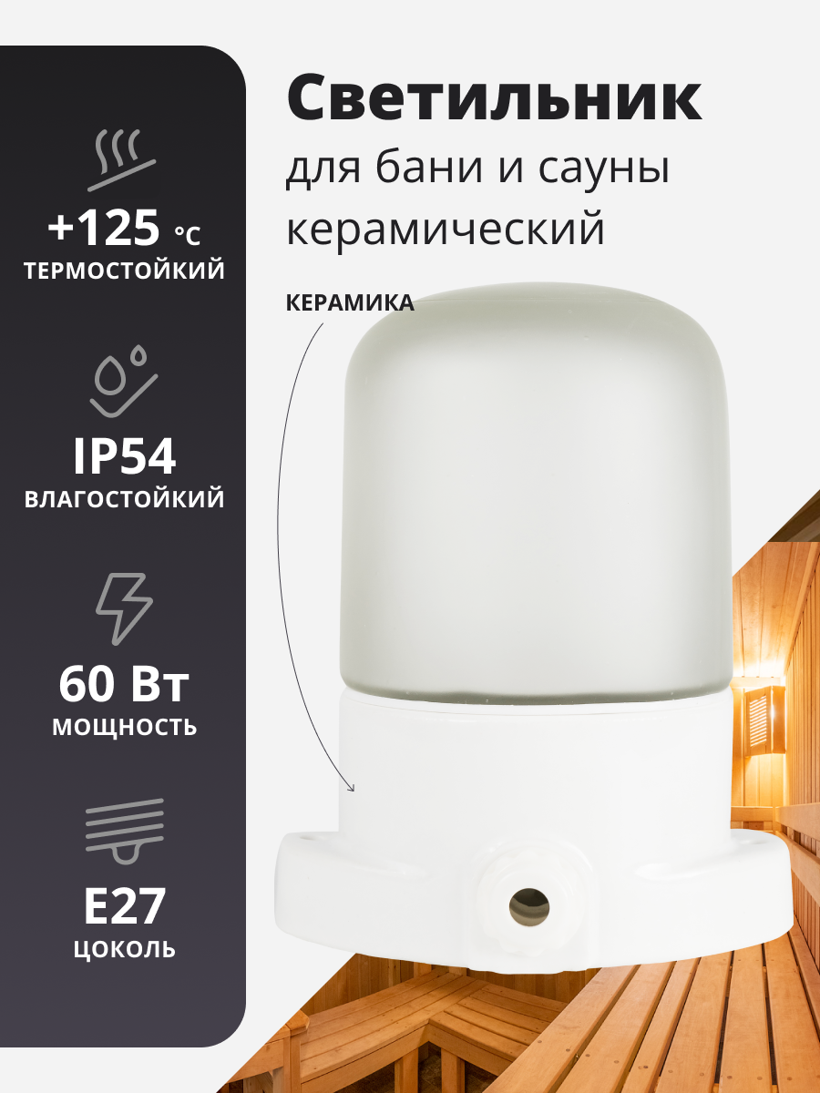 Светильник для бани и сауны керамический интересное:
