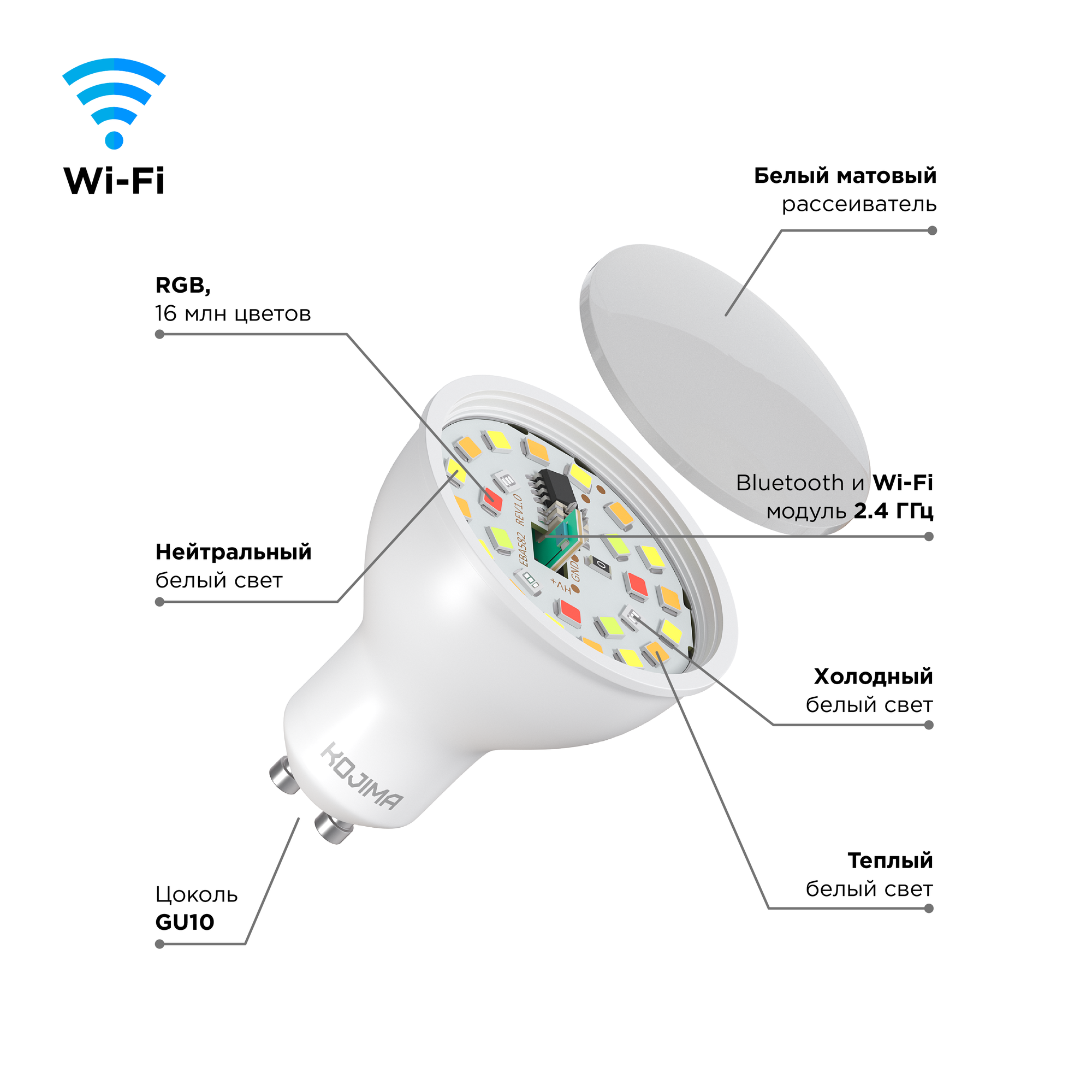 Умная лампочка KOJIMA RGB с Wi-Fi, Яндекс Алисой, Google Home, Smart Bulb 5W GU10 интересное: