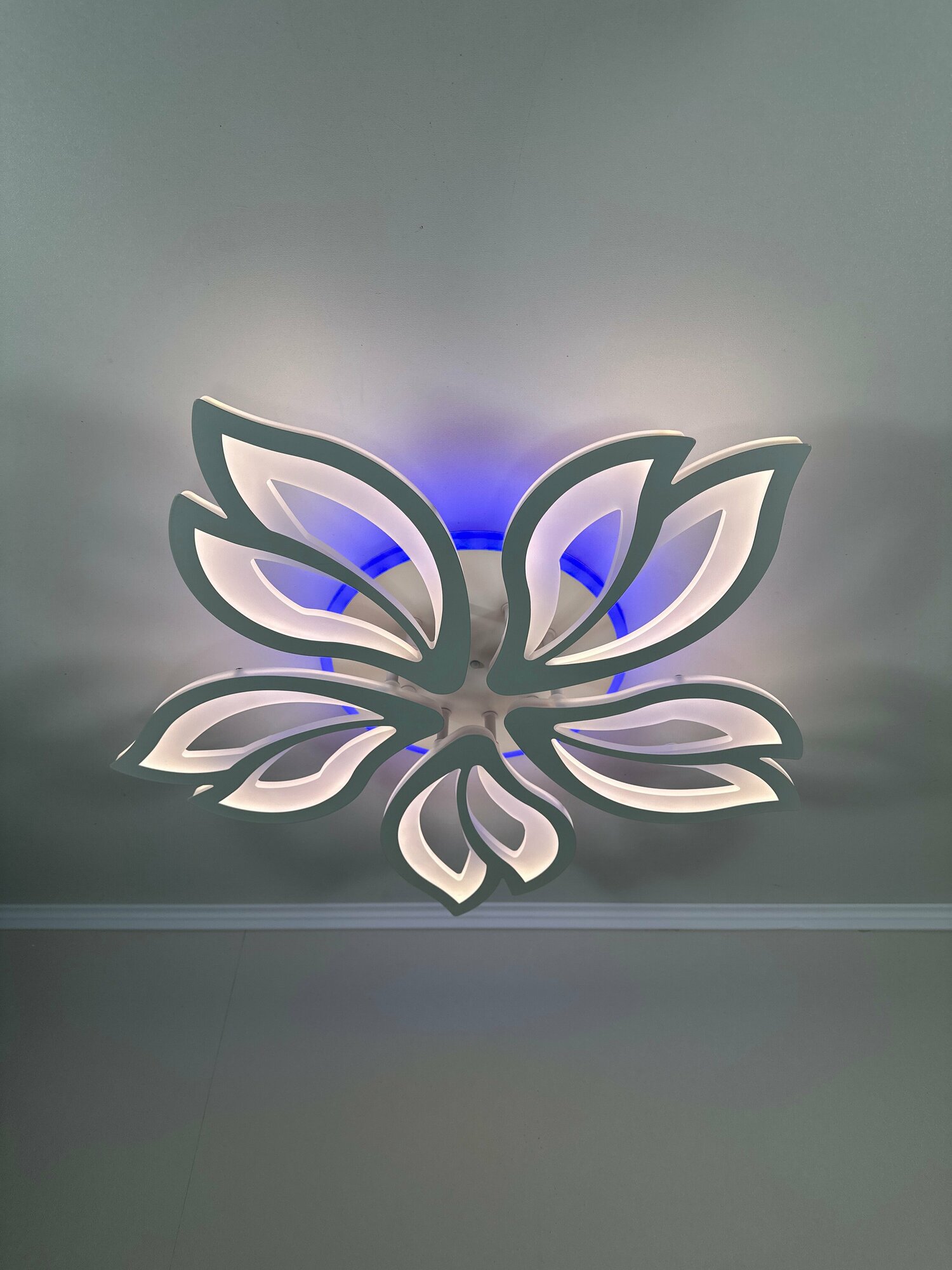 Люстра с пультом светодиодная потолочная 176W, 8 ламп, цветок, большая, белая, LEDCITY