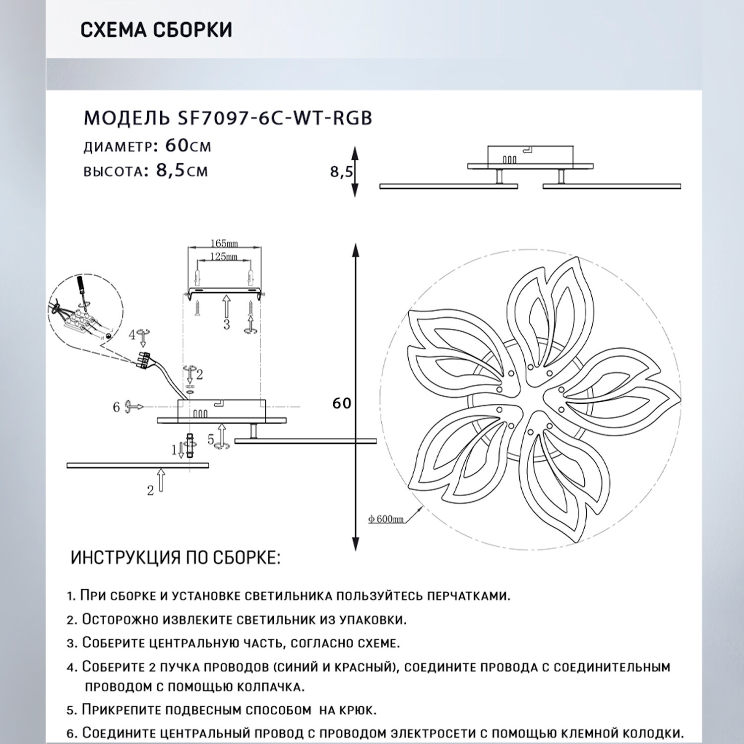Люстра потолочная светодиодная Семь огней SF7097/6C-WT-RGB, с пультом и подсветкой интересное: