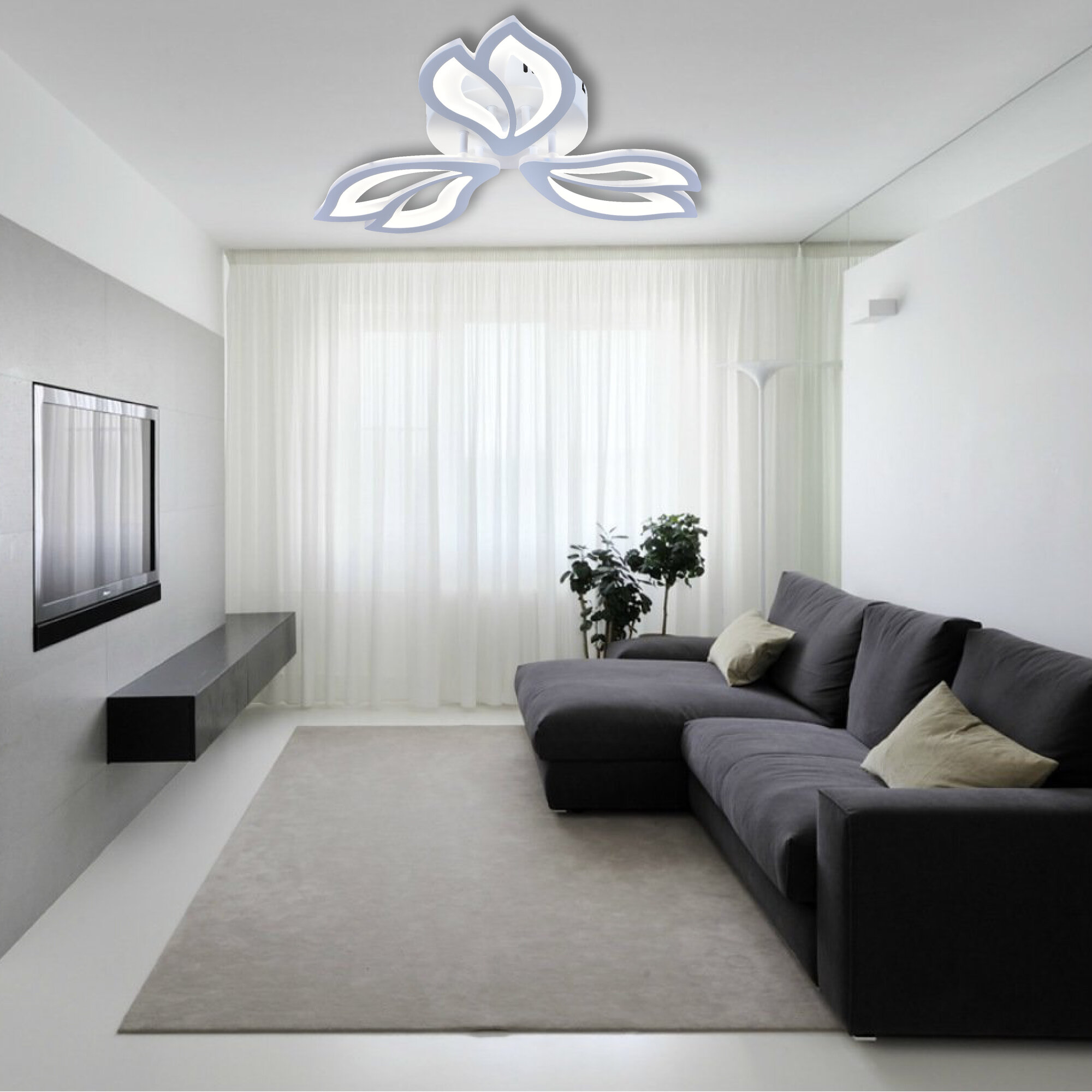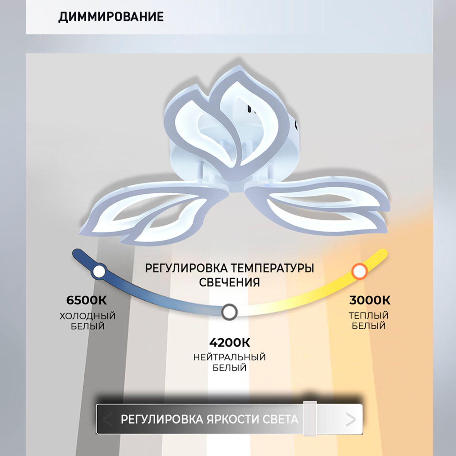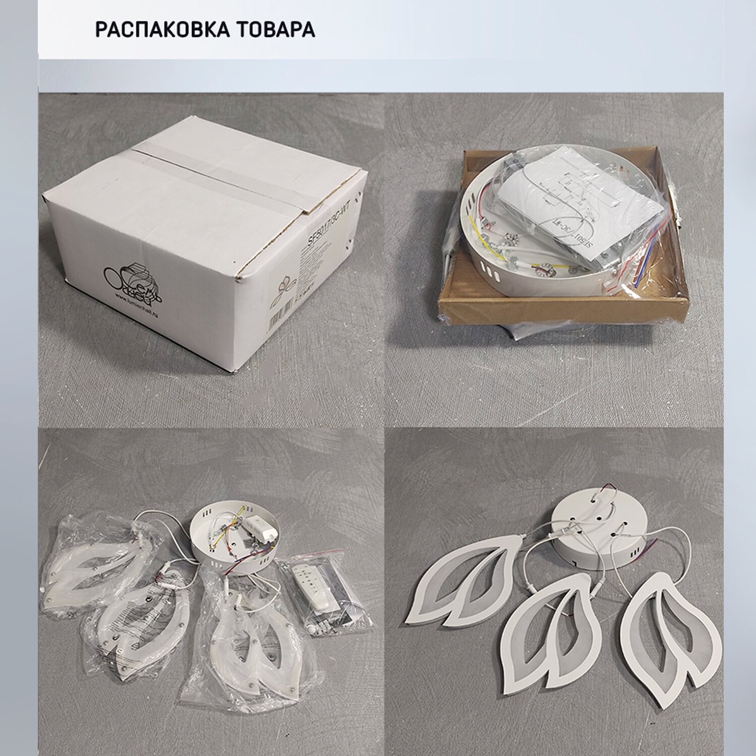 Люстра с пультом светодиодная потолочная 176W, 8 ламп, цветок, большая, белая, LEDCITY