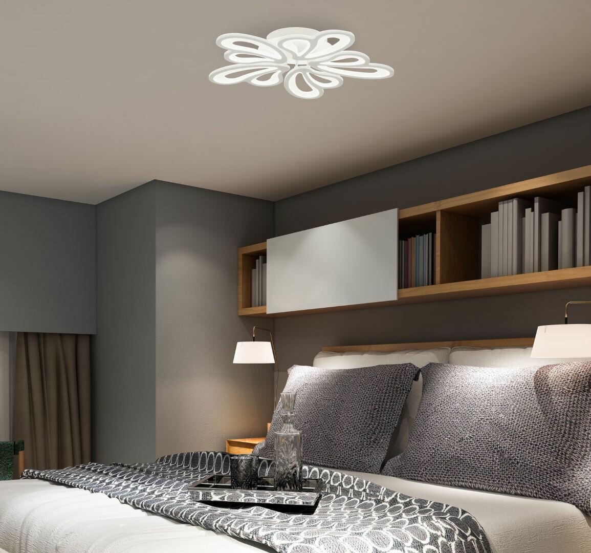 Люстра с пультом светодиодная потолочная 176W, 8 ламп, цветок, большая, белая, LEDCITY