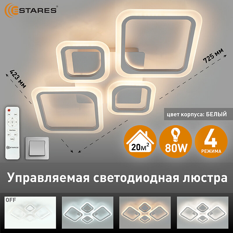 Управляемая светодиодная потолочная люстра OVAL 80W 4S -Estares интересное:
