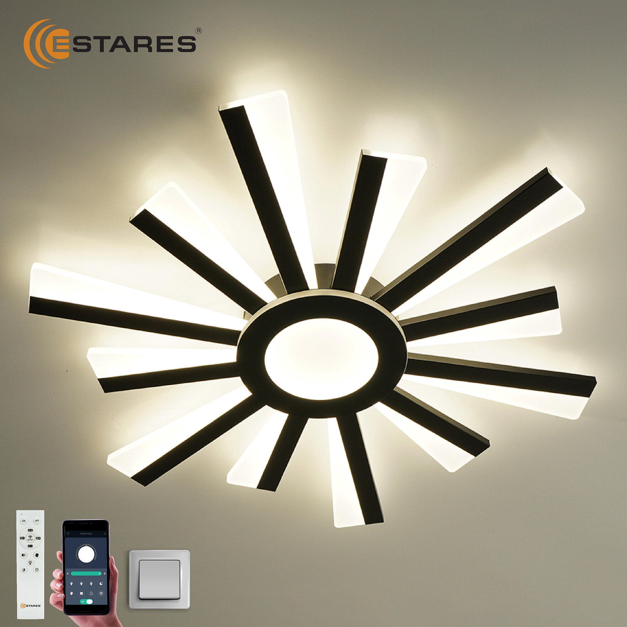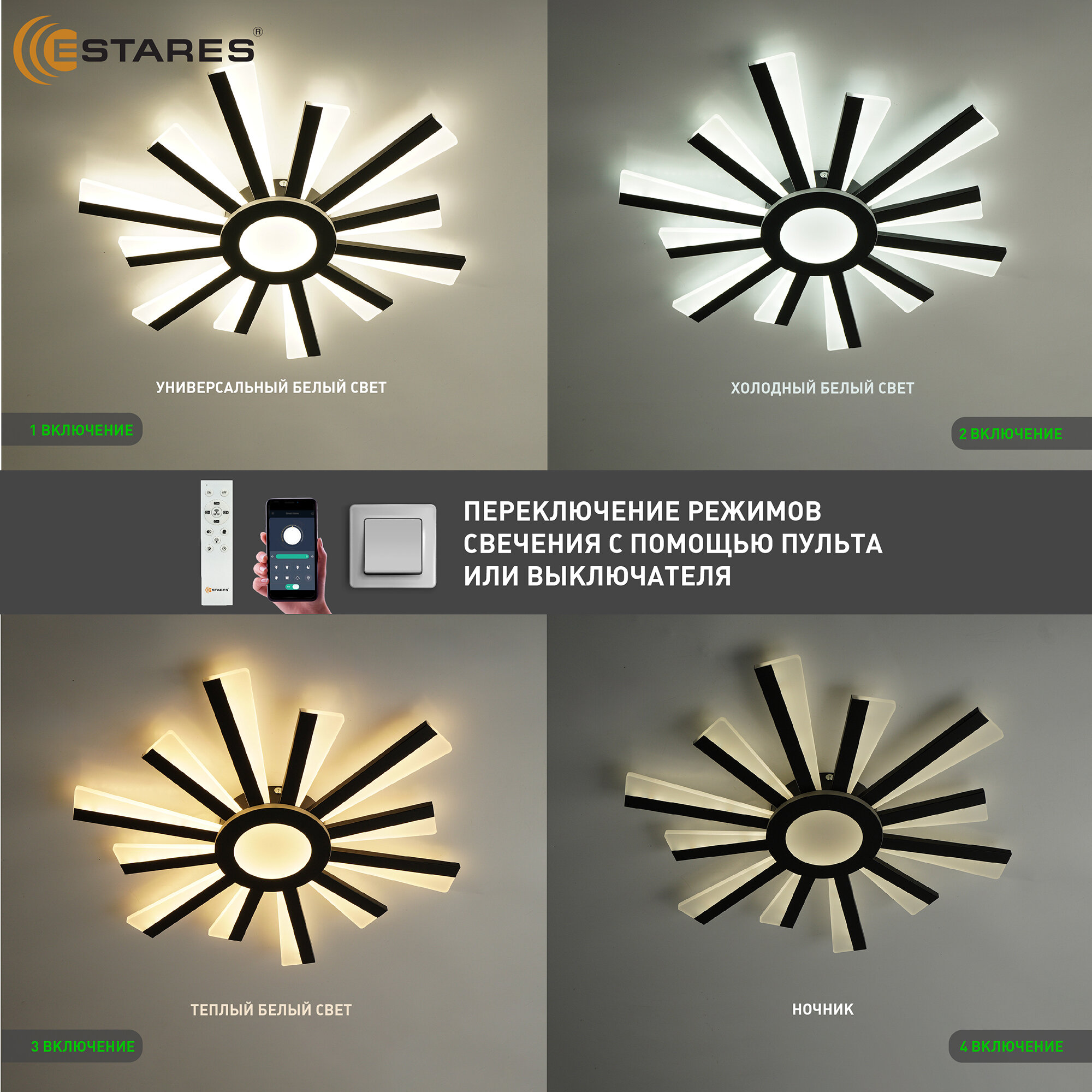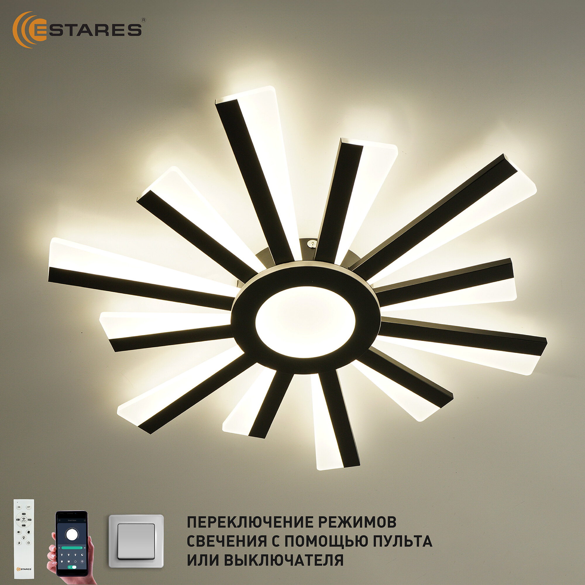 люстра потолочная Светодиодная управляемая с пульта и телефона Солнце 70 Вт черная для гостиной, детской, кухни и прихожей интересное: