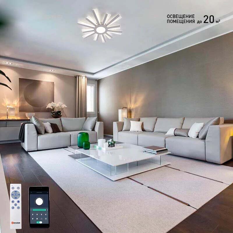 люстра потолочная Светодиодная управляемая с пульта и телефона Солнце 70 Вт для гостиной, детской, кухни и прихожей интересное: