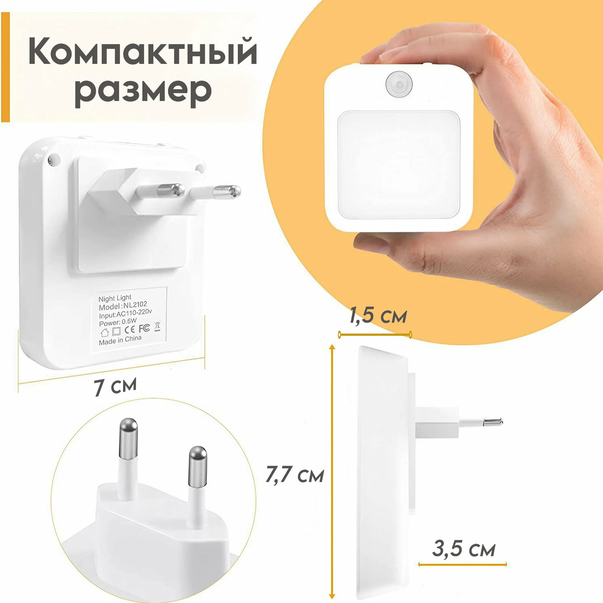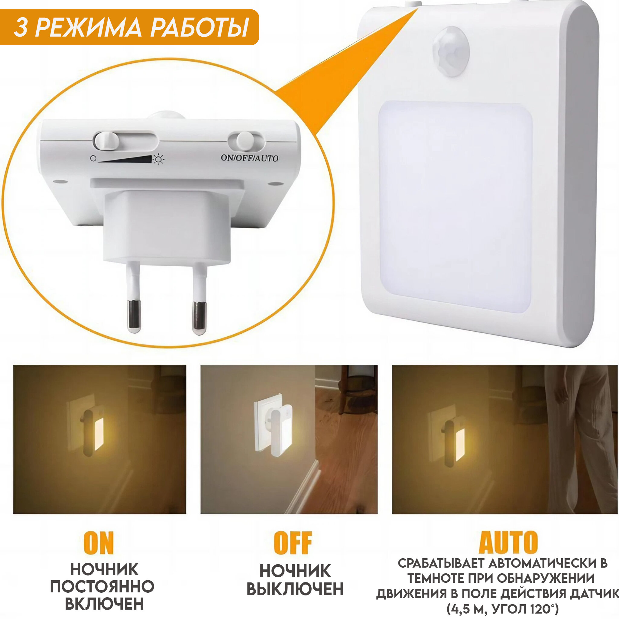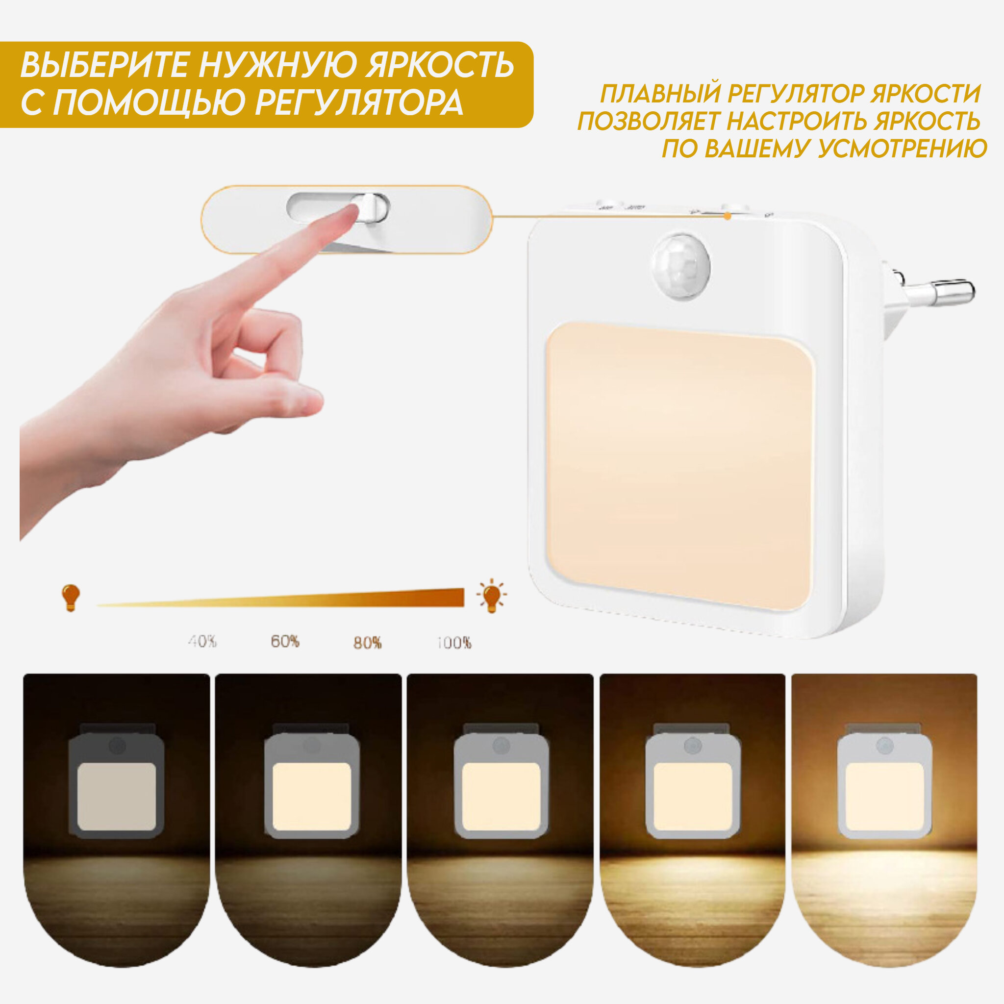 Макстоб,Ночник в розетку с датчиком движения и регулировкой яркости,2 шт интересное:
