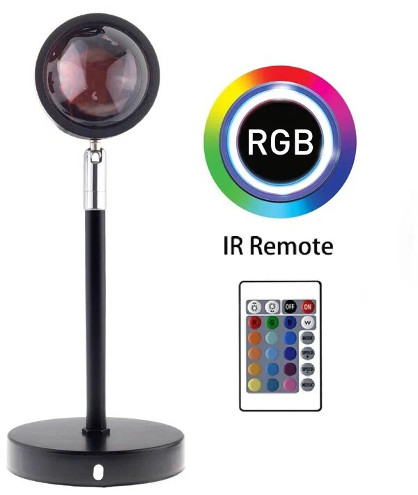 | Дополнительная информация | 16 цветов управление с пультом в комплекте. Диаметр головы: 7.5см Диаметр базы: 12см. Высота мин 28см макс: 38см. Работает от провода USB длина 1,5 м Угол наклона 360 Мощность: 5 Вт Напряжение: 5 В. Лампа закатная для тик тока с пультом управления светильник закат лампа |