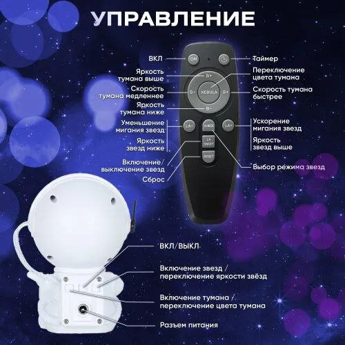 Детский лазерный ночник проектор "Космос" с пультом, звездное небо, 3D космический ночник, фигурка космонавт интересное: