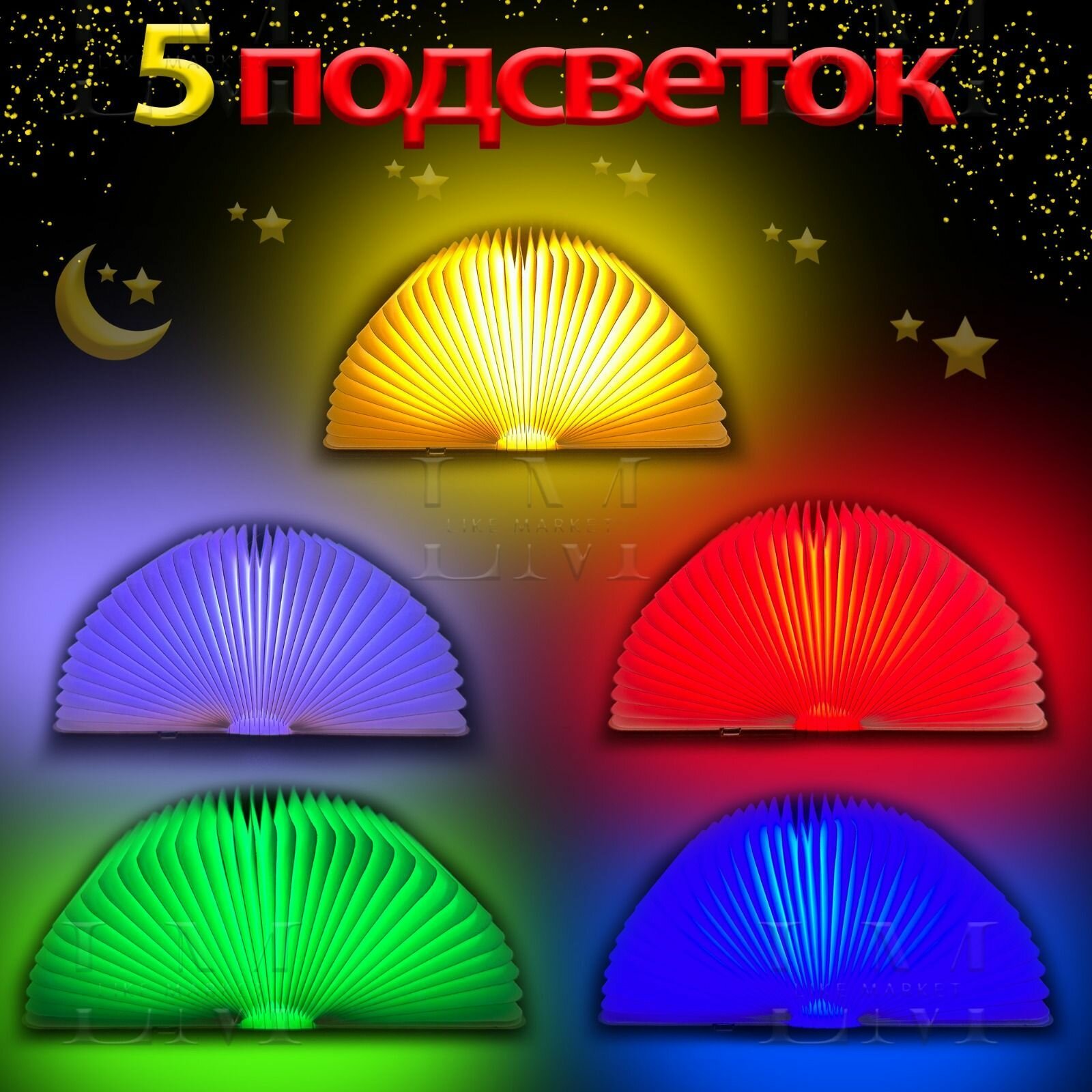 Ночник, LED светильник ночник книжка, 5 видов подсветки, аккумуляторный, с зарядкой от USB, оригинальный подарок интересное: