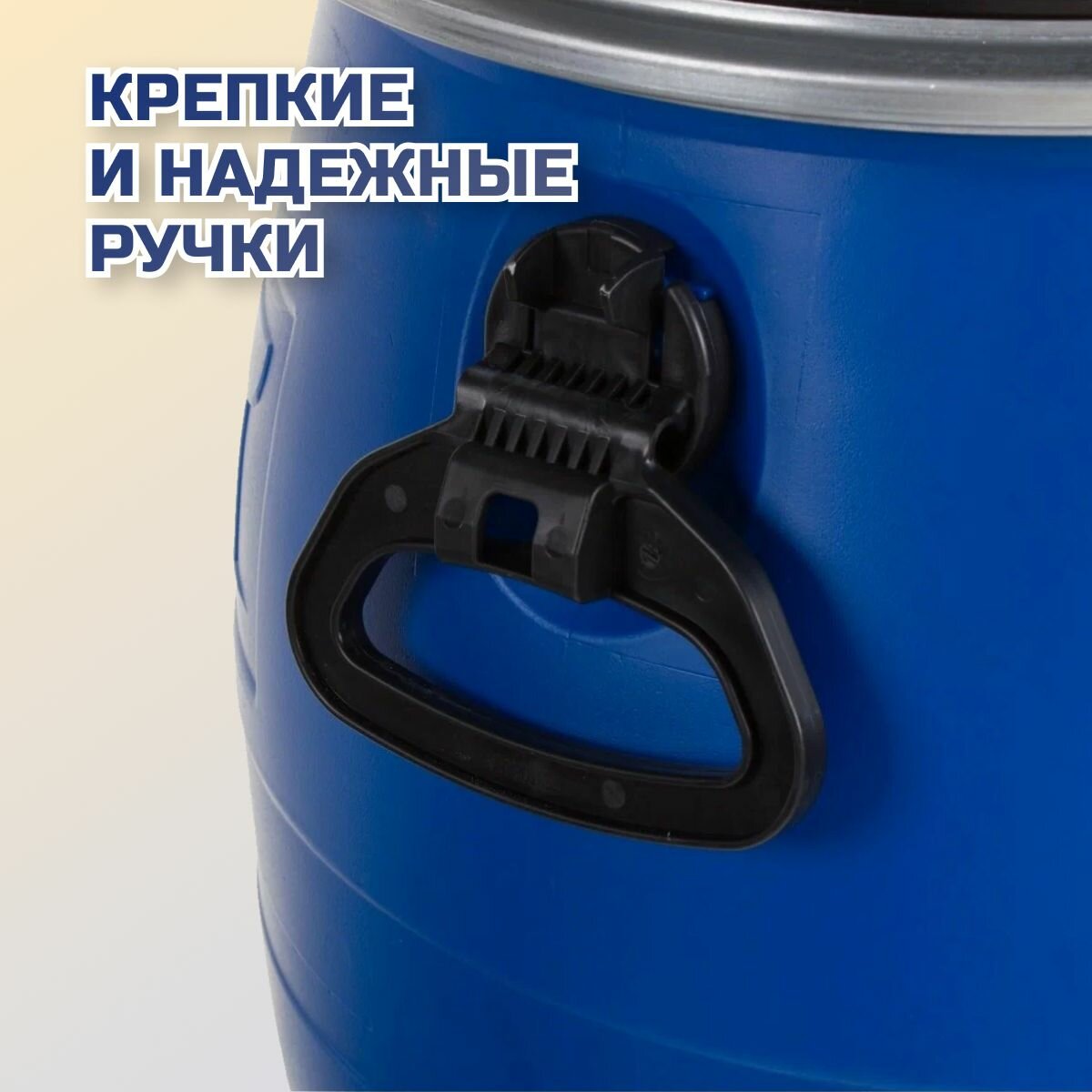 | Комплектация | Бочка - 48л; Крышка; Металлический хомут; Ручки навесные усиленные; Стрелка; Шплинт для пломбирования |