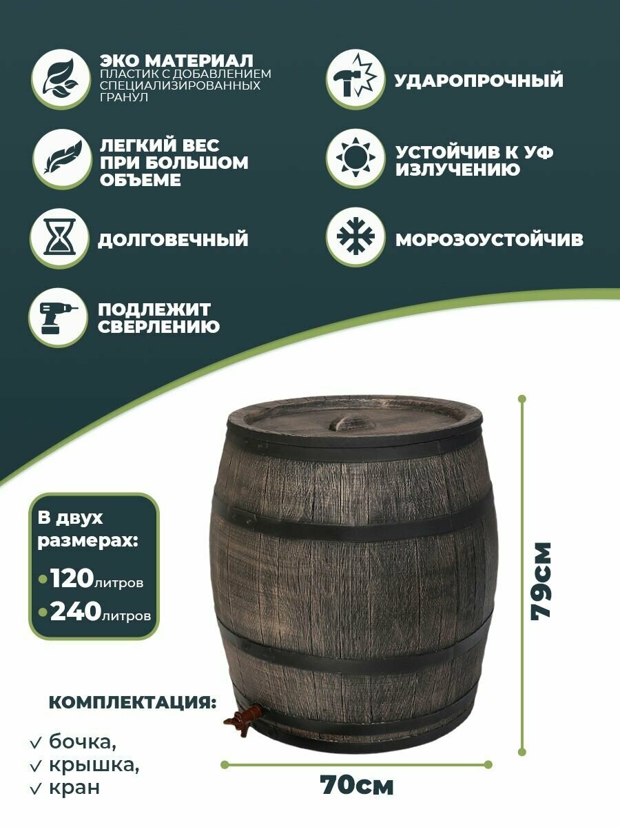 Бочка садовая для воды Roto Water Barrel, 240 л с крышкой и краном бочка пластиковая для воды на дачу коричневая интересное: