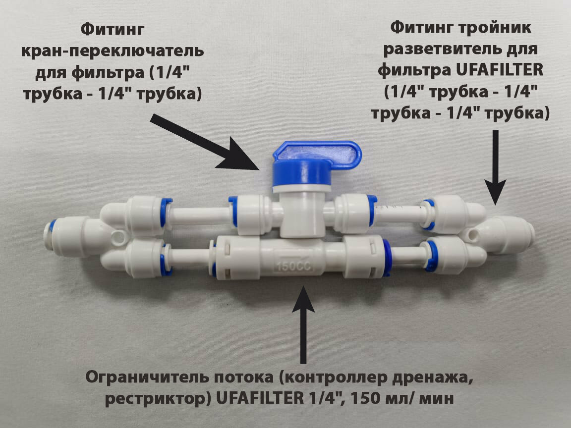 Ограничитель потока 150 мл/мин (контроллер дренажа, рестриктор) для фильтра обратного осмоса UFAFILTER 1/4" с ручной промывкой мембраны интересное: