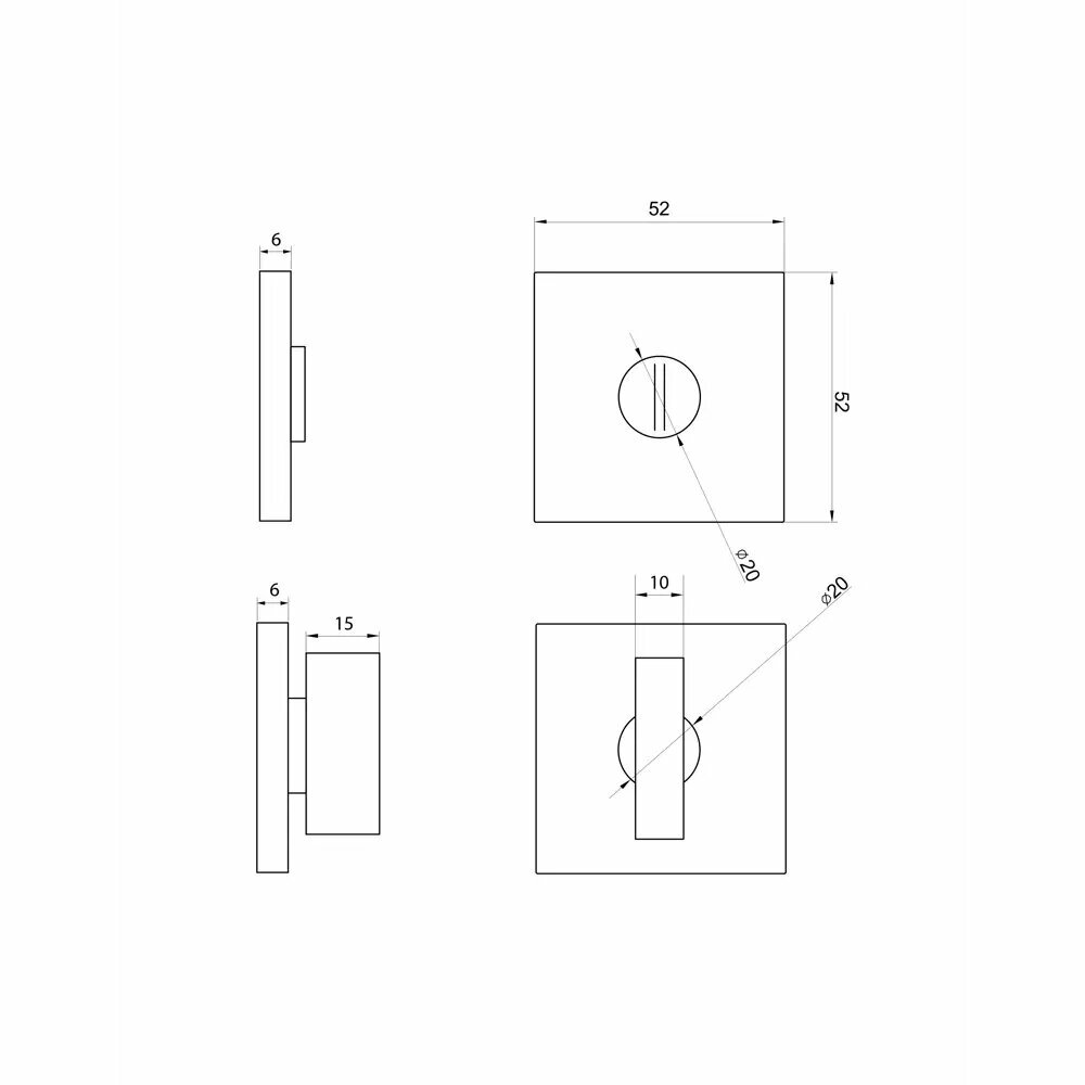 Завертка сантехническая / межкомнатная накладная, квадратная к ручкам PUERTO, серия SLIM, супер сатин хром