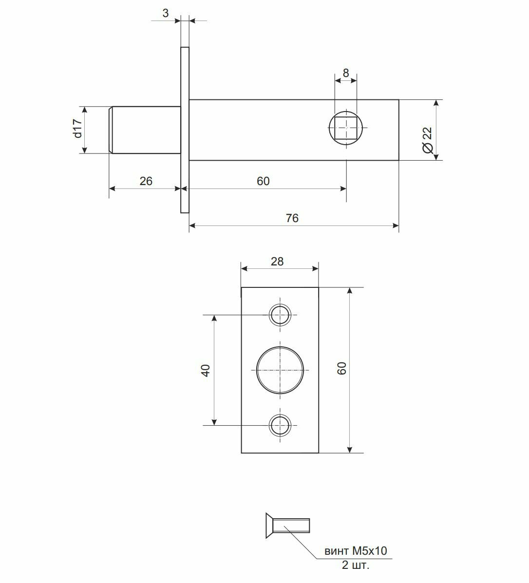 Шпингалет прямоугольный/ задвижка дверная/ шпингалет на дверь, золотистый